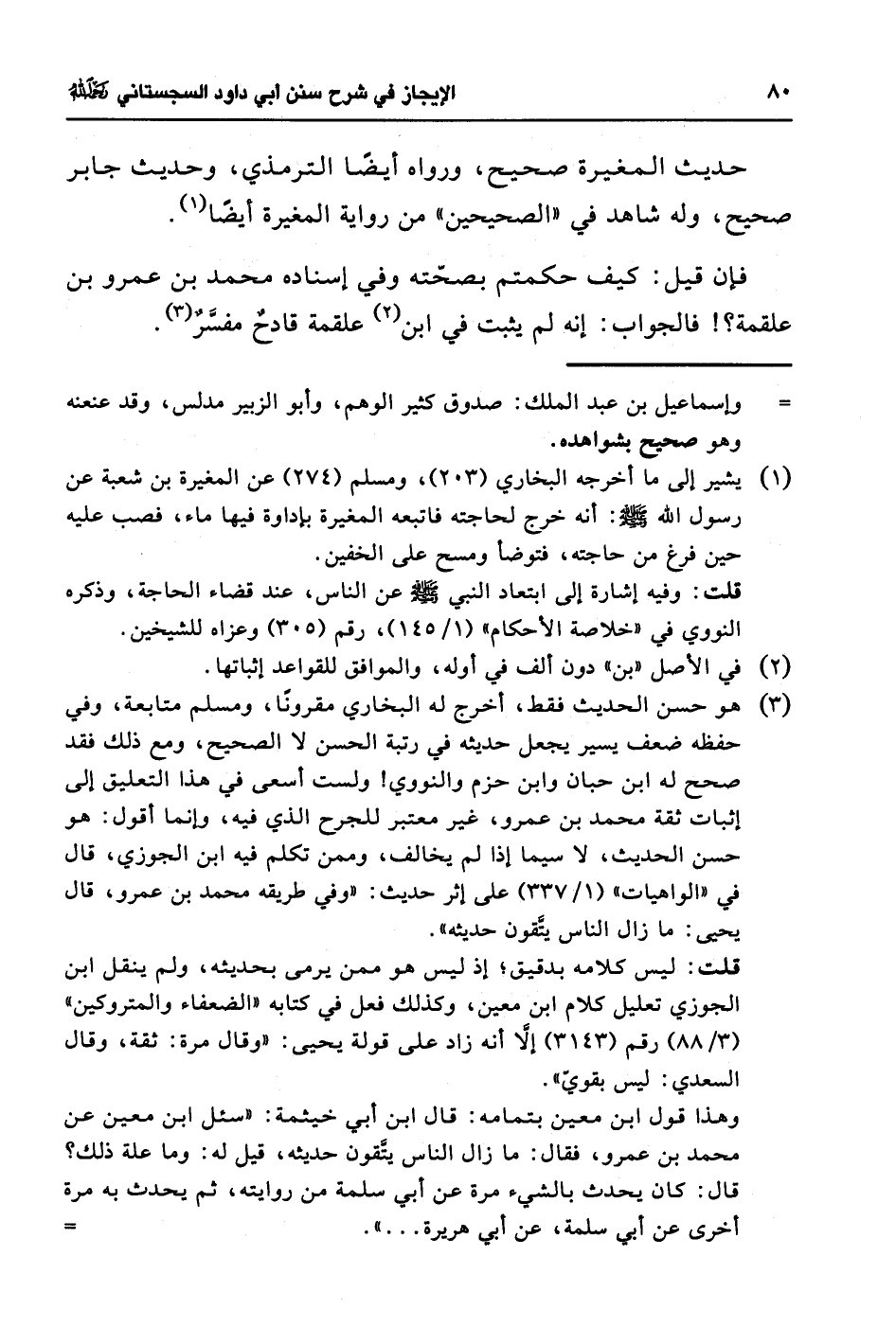 فإن قيل: كيف حكمتم بصحّته وفي إسناده محمد بن عمرو بن علقمة؟! فالجواب: إنه لم يثبت في ابن (¬2) علقمة قادحٌ مفسَّرٌ (¬3).