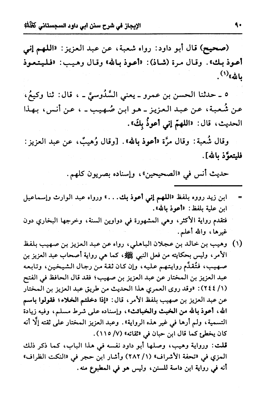 = ابن زيد رووه بلفظ "اللهم اني أعوذ بك ... " ورواه عبد الوارث وإسماعيل ابن علية بلفظ: "أعوذ بالله".