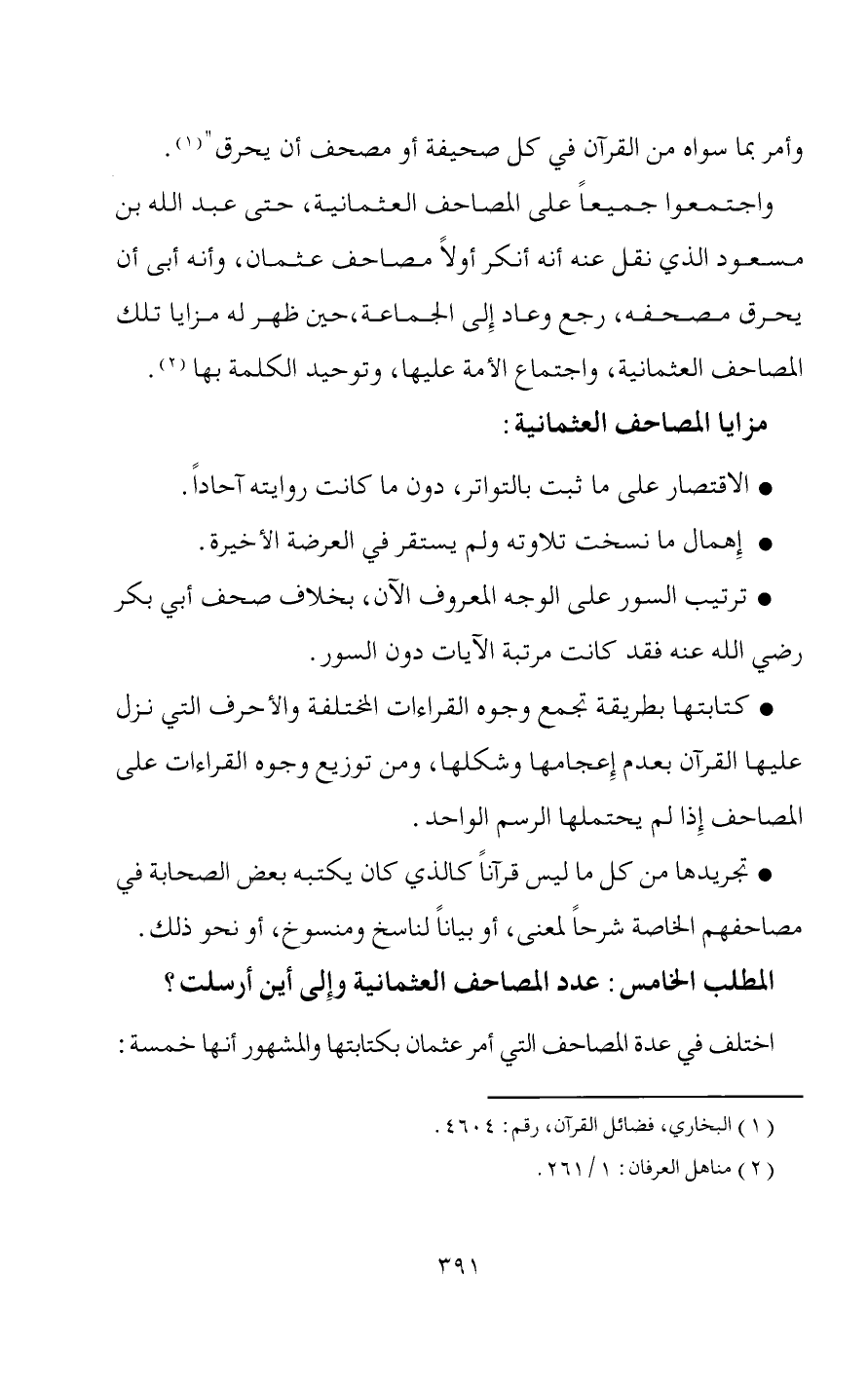 (2) اتحاد الأمة على مصحف واحد، بصورة نهائية يوثق فيه ويعتمد عليه.