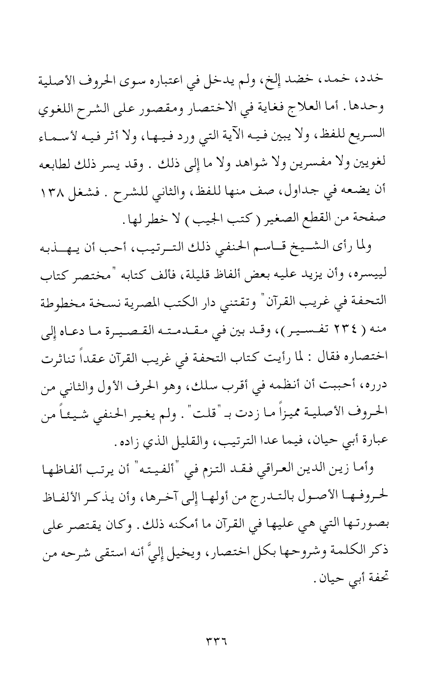 وأصدر حسنين محمد مخلوف "كلمات القرآن: تفسير وبيان"مرتباً ترتيب الآيات في السور. ووضع يمين كل كلمة رقم آياتها، وعن يسارها تفسيرها، في إيجاز، ليكون خفيف المحمل، سهل المأخذ ومثاله: