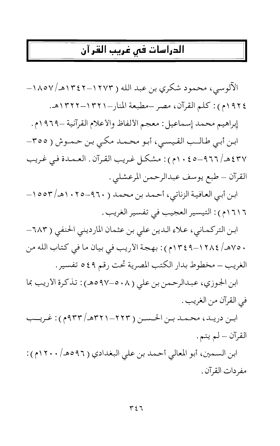 الدمشقي، حمدي عبيد بن محمد حسن (1307-1391/1889-1971) : القرآن وتفسير غريبة – دمشق 1963.
