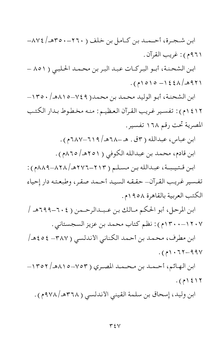 عرجون، محمد الصادق: قاموس غريب القرآن – مطبعة محمد علي صبيح وأولاده بمصر 1980/1400.