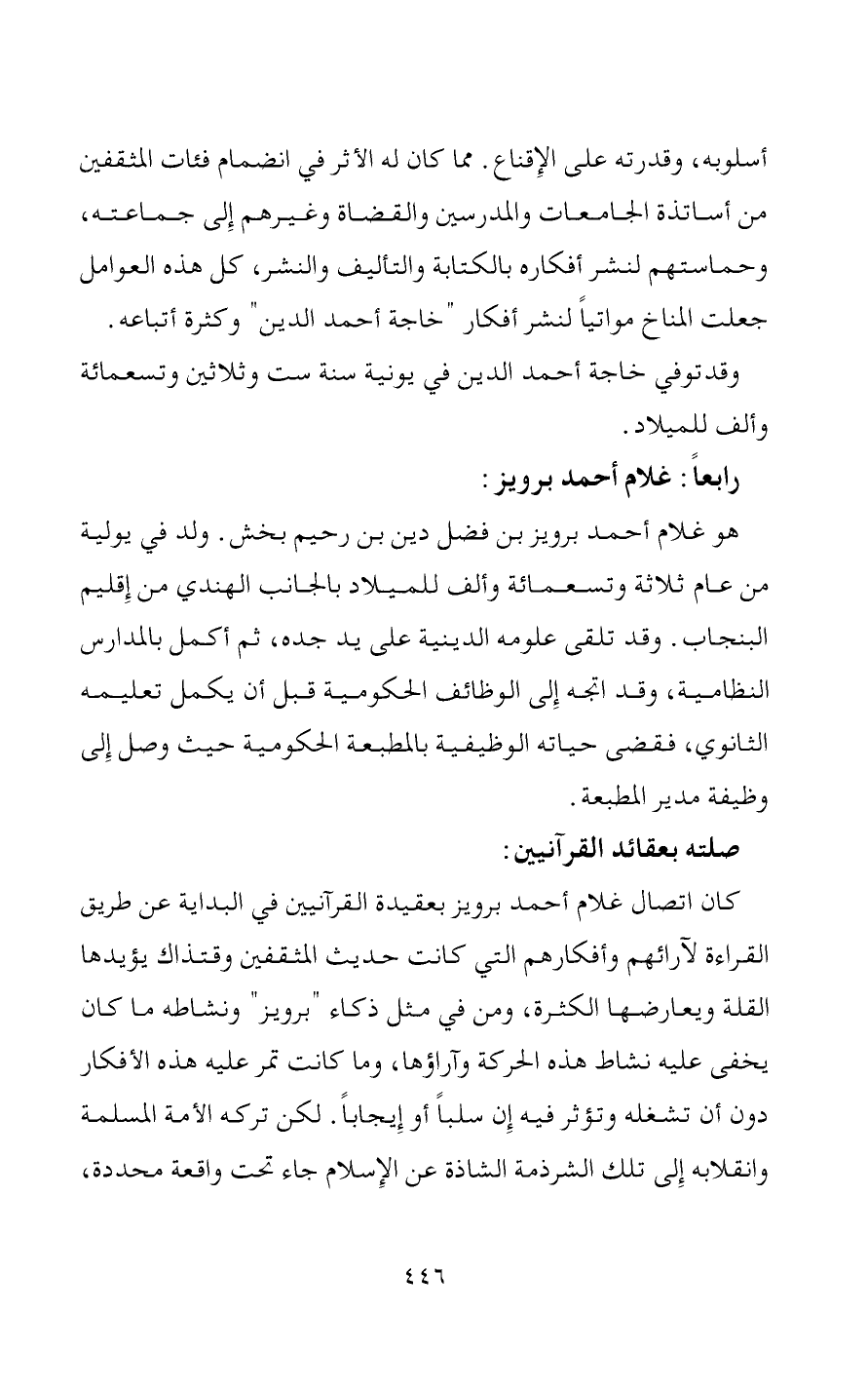 بينا فيما سبق أشهر زعماء القرآنيين - منكري السنة النبوية المطهرة -، وقد ذهب هؤلاء وبقيت دعواتهم على هيئة فرق وطوائف تكونت على أساس من هذه الدعوات. وقد فعل الزمان والظروف فعلها في هذه الحركات، حيث تلاقحت الأفكار والمناهج، فتأثر هذا بذاك، واختلط بعض ببعض، وكان من ذلك بضعة طوائف ما تزال تتحرك على الساحة الإسلامية بباكستان والهند، وبعض البلاد الأوربية - وبخاصة انجلترا - التي يصل إليها صدى هذه الحركات عبر الذين يذهبون إلى هناك للدراسة أو العمل، وكثير من هؤلاء تجنس بالجنسية البريطانية واستقر هناك. وسوف نشير إلى أشهر الطوائف التي ما تزال على الساحة، ولها تأثيرها:
