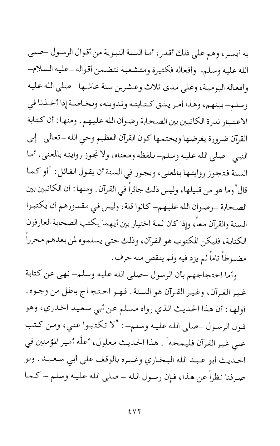 هذا قليل من كثير مما يبين موقف الصحابة - رضوان الله عليهم - من سنة رسول الله - صلى الله عليه وسلم - وهو موقف يتسم بالحرص الشديد والاهتمام البالغ على معرفة سنة رسول الله - صلى الله عليه وسلم - وحفظها والالتزام بها، بل وتبليغها إلى من يسمعها استجابة لقول رسول الله - صلى الله عليه وسلم - "نضر الله امرأ سمع مقالتي ووعاها فأداها كما سمعها، فرب مبلَّغ أوعى من سامع" (4) .