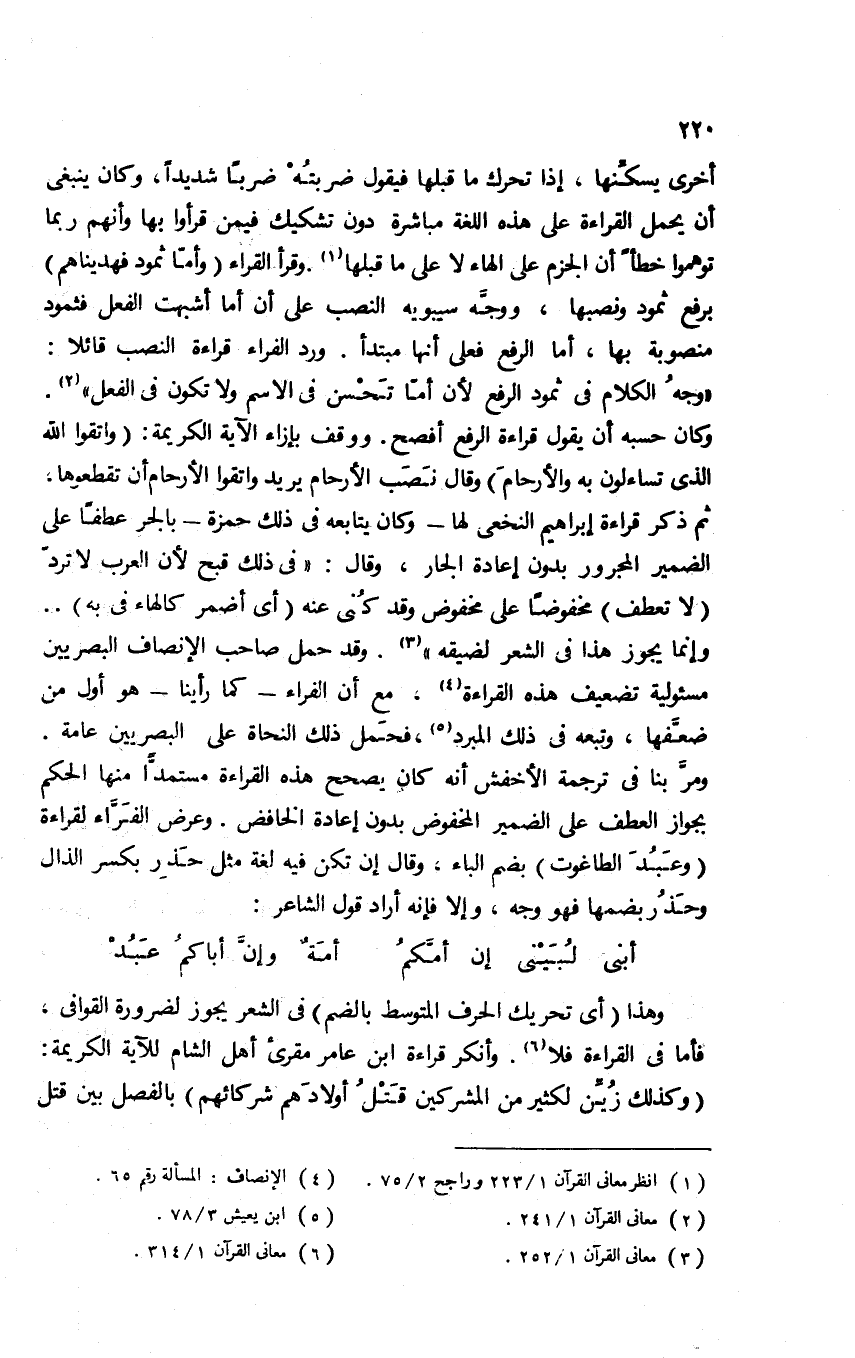 أخرى: يسكنها، إذا تحرك ما قبلها فيقول: ضربته ضربا شديدا، وكان ينبغي أن يحمل القراءة على هذه اللغة مباشرة دون تشكيك فيمن قرءوا بها, وأنهم ربما توهموا خطأ أن الجزم على الهاء لا على ما قبلها1. وقرأ القراء: {وَأَمَّا ثَمُودُ فَهَدَيْنَاهُمْ} برفع {ثَمُودُ} ونصبها، ووجه سيبويه النصب على أن أما أشبهت الفعل فثمود منصوبة بها، أما الرفع فعلى أنها مبتدأ. ورد الفراء قراءة النصب قائلا: "وجه الكلام في ثمود الرفع؛ لأن أما تحسن في الاسم ولا تكون في الفعل"2. وكان حسبه أن يقول: قراءة الرفع أفصح. ووقف بإزاء الآية الكريمة: {وَاتَّقُوا اللَّهَ الَّذِي تَسَاءَلُونَ بِهِ وَالْأَرْحَامَ} وقال: نصب الأرحام يريد: واتقوا الأرحام أن تقطعوها، ثم ذكر قراءة إبراهيم النخعي لها -وكان يتابعه في ذلك حمزة- بالجر عطفا على الضمير المجرور بدون إعادة الجار، وقال: "في ذلك قبح؛ لأن العرب لا ترد "لا تعطف" مخفوضا على مخفوض, وقد كنيى عنه "أي: أضمر كالهاء في به" ... وإنما يجوز هذا في الشعر لضيقه"4. وقد حمل صاحب الإنصاف البصريين مسئولية تضعيف هذه القراءة4, مع أن الفراء -كما رأينا- هو أول من ضعفها، وتبعه في ذلك المبرد5، فحمل ذلك النحاة على البصريين عامة، ومر بنا في ترجمة الأخفش أنه كان يصحح هذه القراءة مستمدا منها الحكم بجواز العطف على الضمير المخفوض بدون إعادة الخافض. وعرض الفراء لقراءة "وعَبُدَ الطاغوت" بضم الباء، وقال: إن تكن فيه لغة مثل حَذِر بكسر الذال وحَذُر بضمها فهو وجه، وإلا فإنه أراد قول الشاعر: