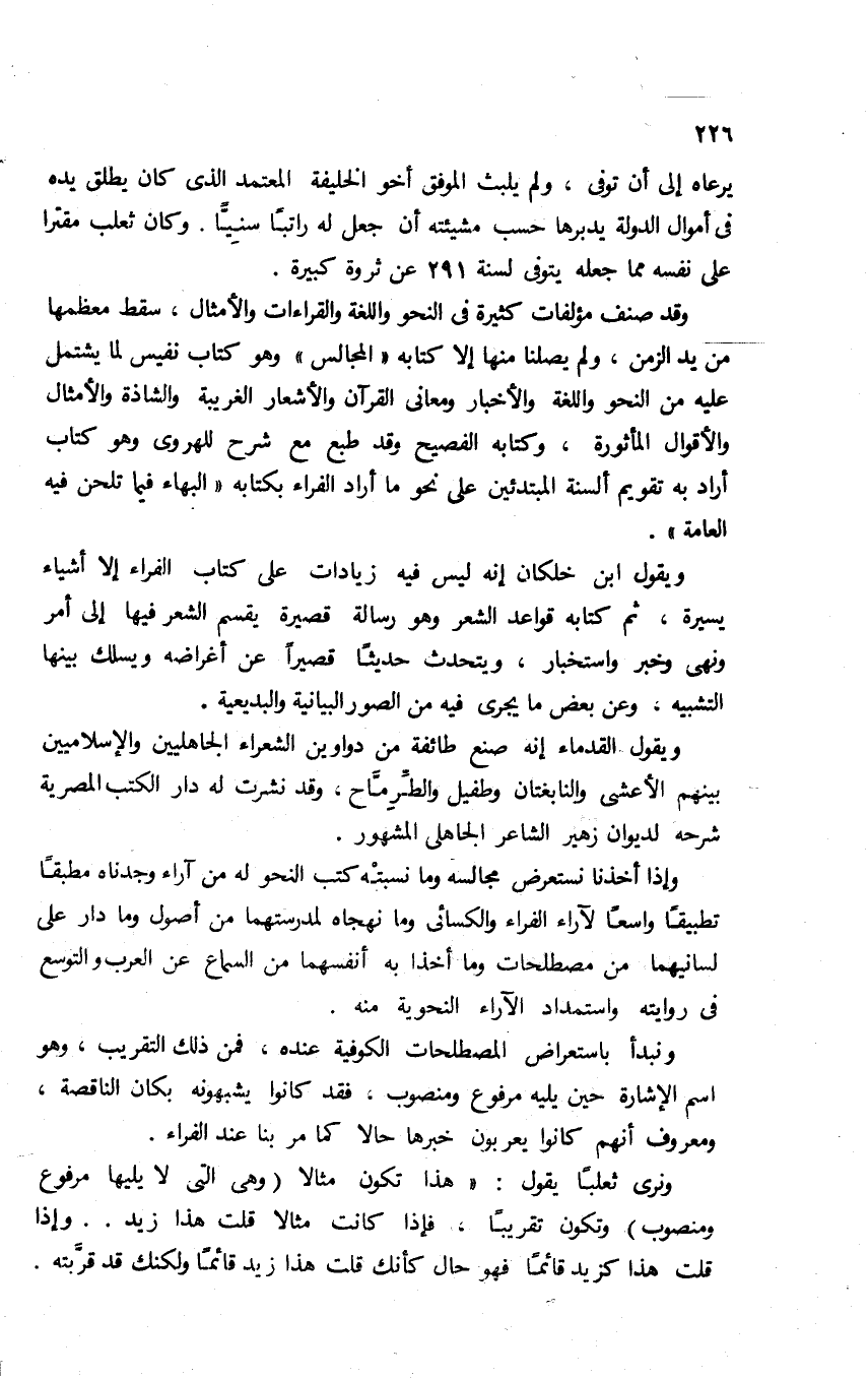 ويقول ابن خلكان: إنه ليس فيه زيادات على كتاب الفراء إلا أشياء يسيرة، ثم كتابه قواعد الشعر وهو رسالة قصيرة يقسم الشعر فيها إلى: أمر ونهي وخبر واستخبار، ويتحدث حديثا قصيرا عن أغراضه ويسلك بينها التشبيه، وعن بعض ما يجري فيه من الصور البيانية والبديعية.