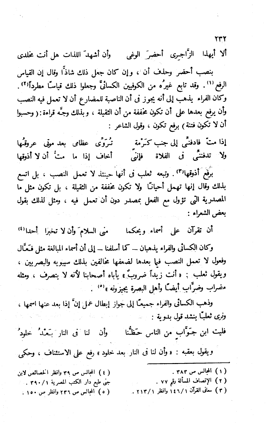 4 المجالس ص39, وانظر الخصائص لابن جني, طبع دار الكتب المصرية 1/ 390.