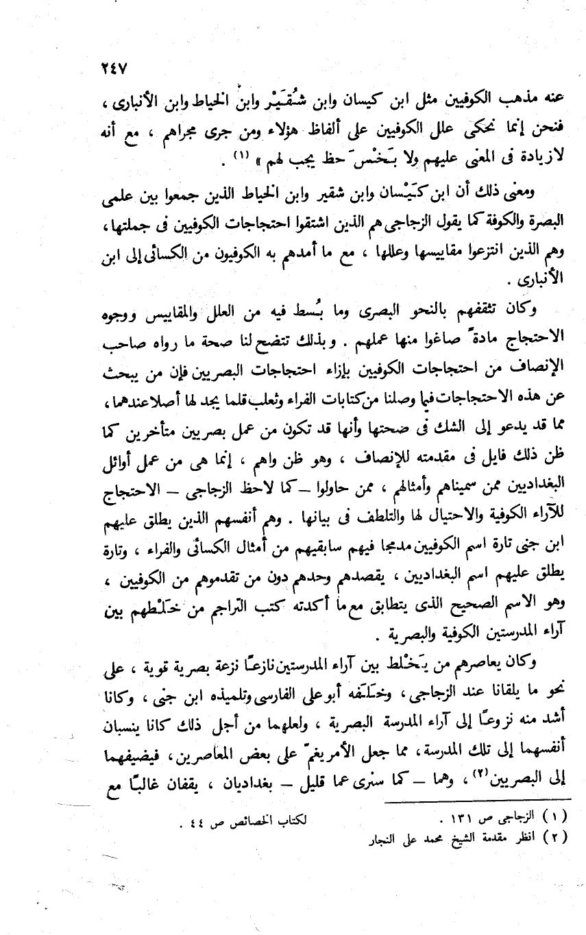 2 انظر مقدمة الشيخ محمد علي النجار لكتاب الخصائص ص44.