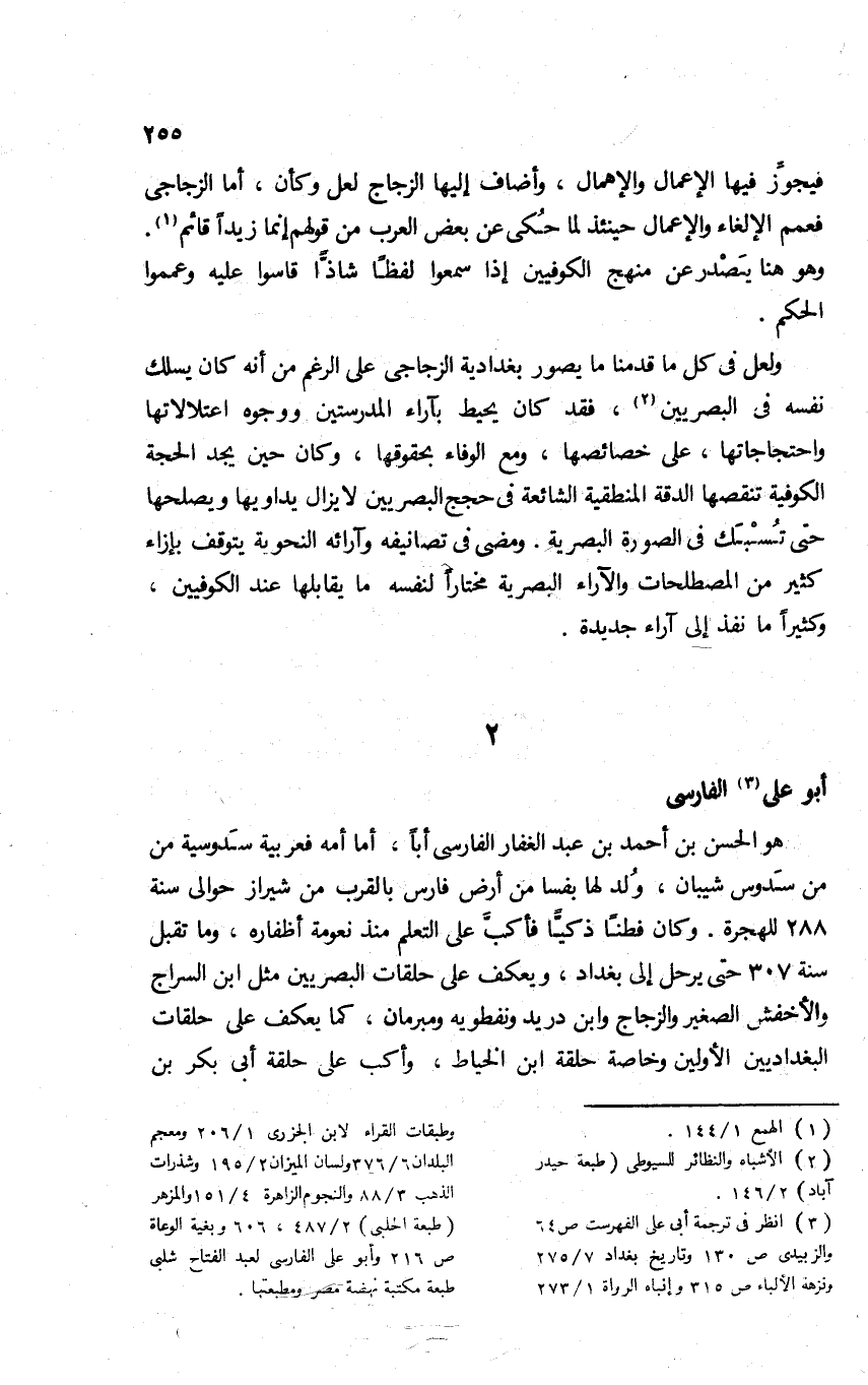 1 انظر في ترجمة أبي علي: الفهرست ص64، والزبيدي ص130, وتاريخ بغداد 7/ 275، ونزهة الألباء ص315, وإنباه الرواة 1/ 273، وطبقات القراء لابن الجزري 1/ 206, ومعجم البلدان 6/ 376, ولسان الميزان 2/ 195، وشذرات الذهب 3/ 88, والنجوم الزاهرة 4/ 151, والمزهر "طبعة الحلبي" 2/ 487، 606, وبغية الوعاة ص216, وأبو علي الفارسي لعبد الفتاح شلبي, طبعة مكتبة نهضة مصر ومطبعتها.
