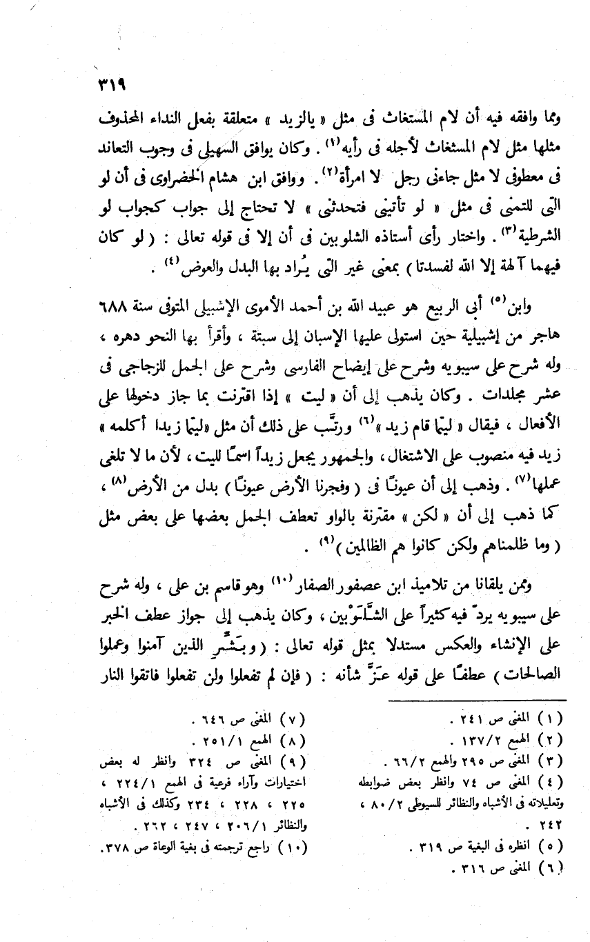 9 المغني ص324, وانظر له بعض اختيارات وآراء فرعية في الهمع 1/ 224، 225، 228، 234, وكذلك في الأشباه والنظائر 1/ 206، 247، 262.