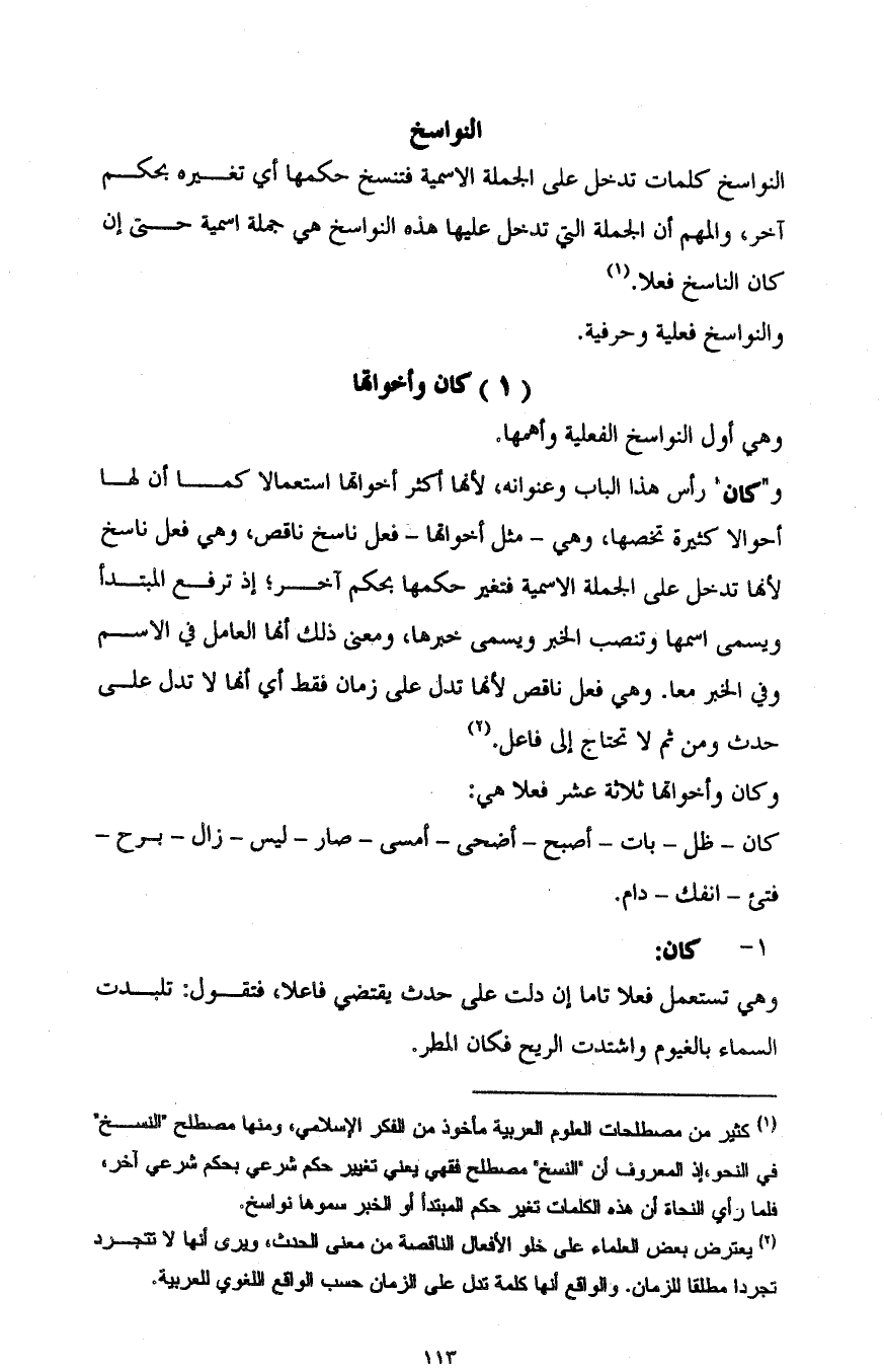 2 يعترض بعض العلماء على خلو الأفعال الناقصة من معنى الحدث، ويرى أنها لا تتجرد تجردا مطلقا للزمان. والواقع أنها كلمة تدل على الزمان حسب الواقع اللغوي للعربية.