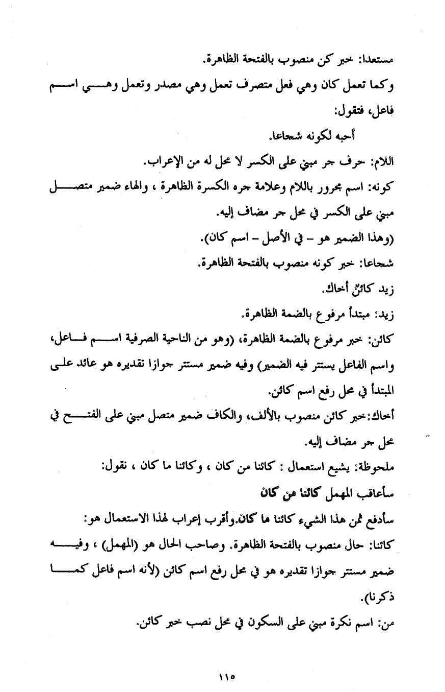 وكما تعمل كان وهي فعل متصرف تعمل وهي مصدر وتعمل وهي اسم فاعل، فتقول: