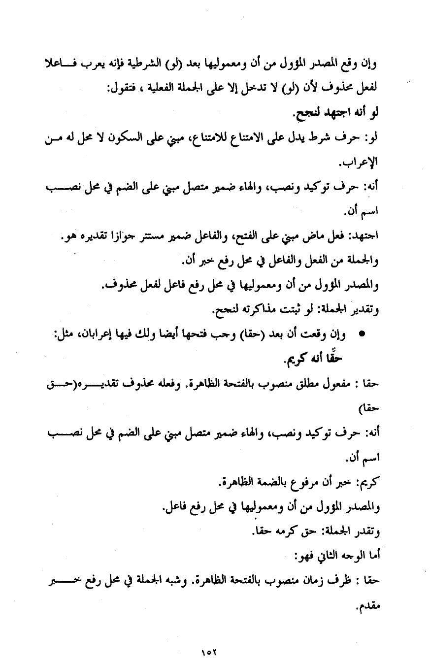 وإن وقع المصدر المؤول من أن ومعموليها بعد "لو" الشرطية فإنه يعرب فاعلا لفعل محذوف؛ لأن "لو" لا تدخل إلا على الجملة الفعلية، فتقول: