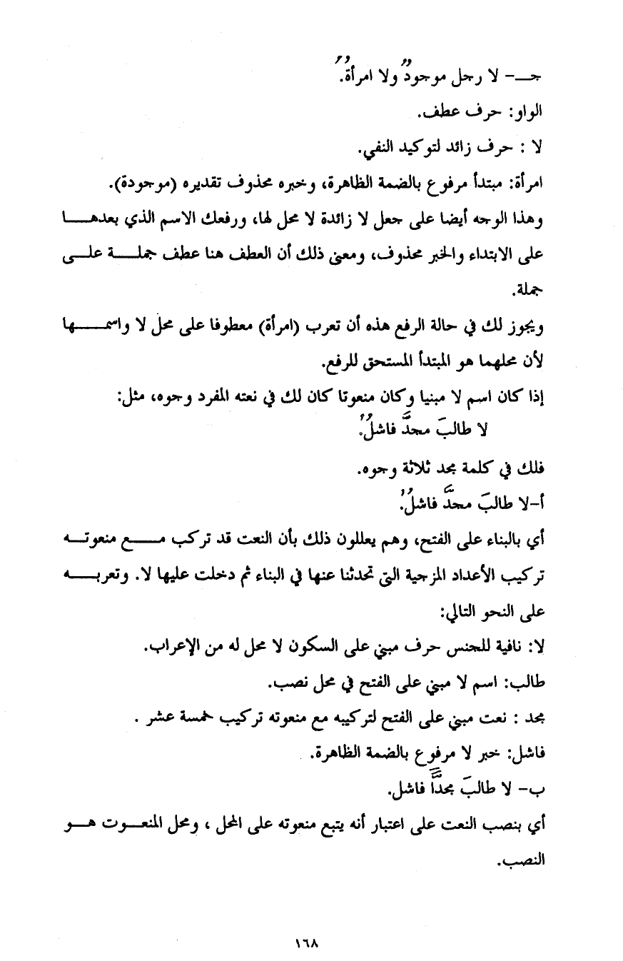ويجوز لك في حالة الرفع هذه أن تعرف "امرأة" معطوف على محل لا واسمها؛ لأن محلهما هو المبتدأ المستحق للرفع.