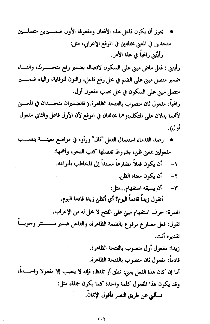 - رصد القدماء استعمال الفعل "قال" ورأوه في مواضع معينة ينصب مفعولين بمعنى ظن، بشروط تفصلها كتب النحو، وأهمها: