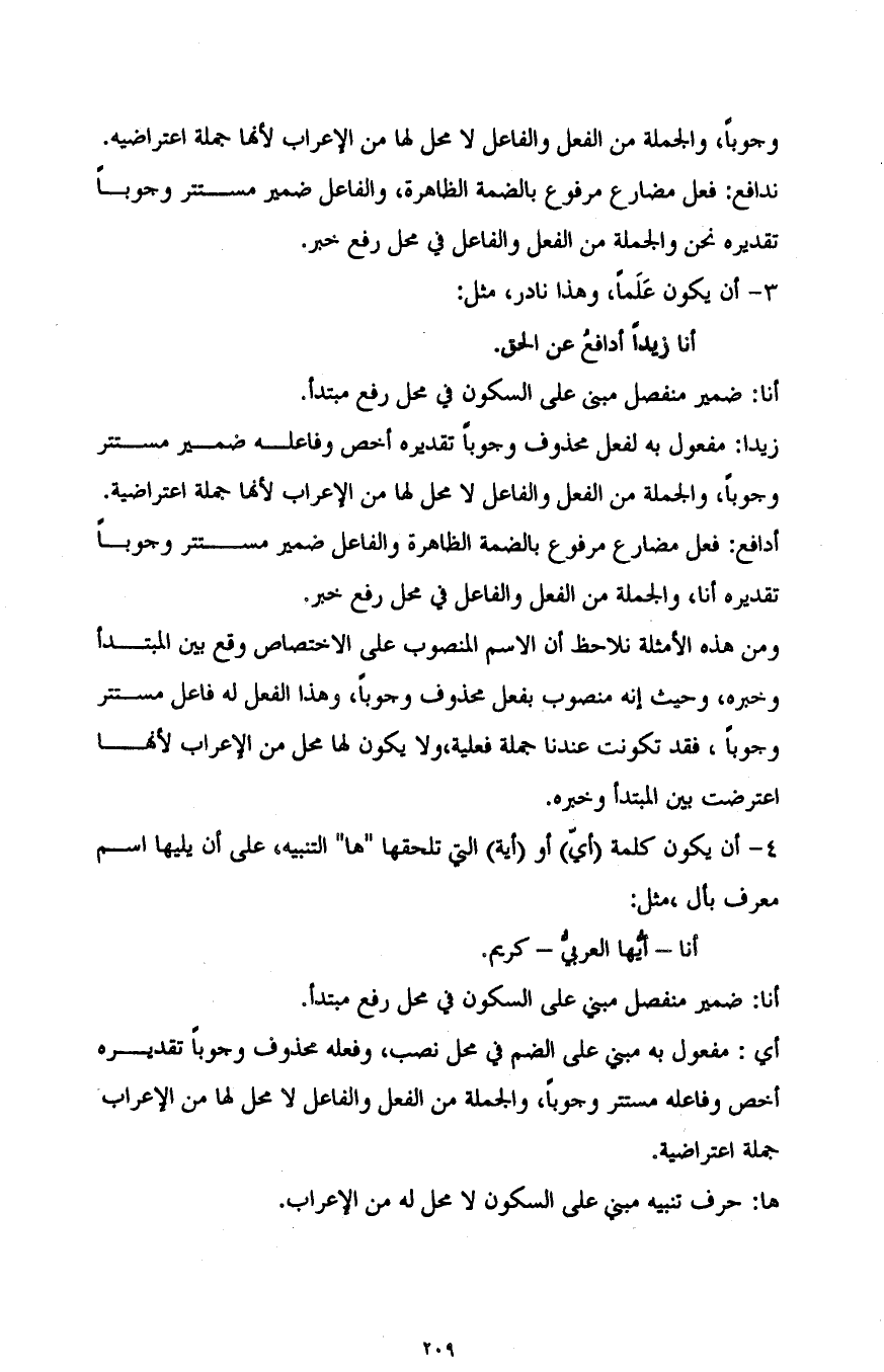 ومن هذه الأمثلة نلاحظ أن الاسم المنصوب على الاختصاص وقع بين المبتدأ وخبره، وحيث إنه منصوب بفعل محذوف وجوبا، وهذا الفعل له فاعل مستتر وجوبا، فقد تكونت عندنا جملة فعلية، ولا يكون لها محل من الإعراب لأنها اعترضت بين المبتدأ وخبره.
