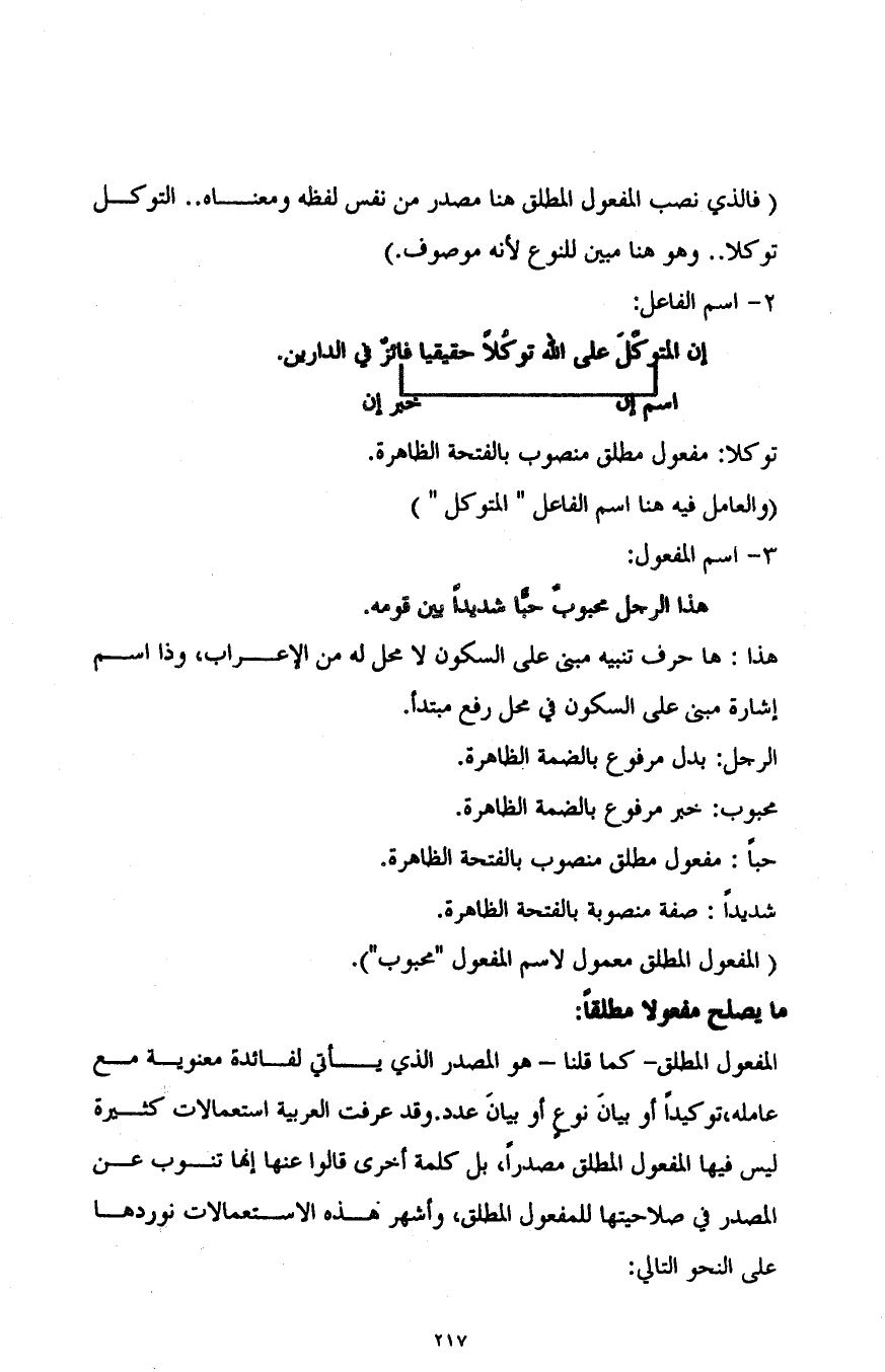 "فالذي نصب المفعول المطلق هنا مصدر من نفس لفظه ومعناه.. التوكل توكلا.. وهو هنا مبين للنوع لأنه موصوف".