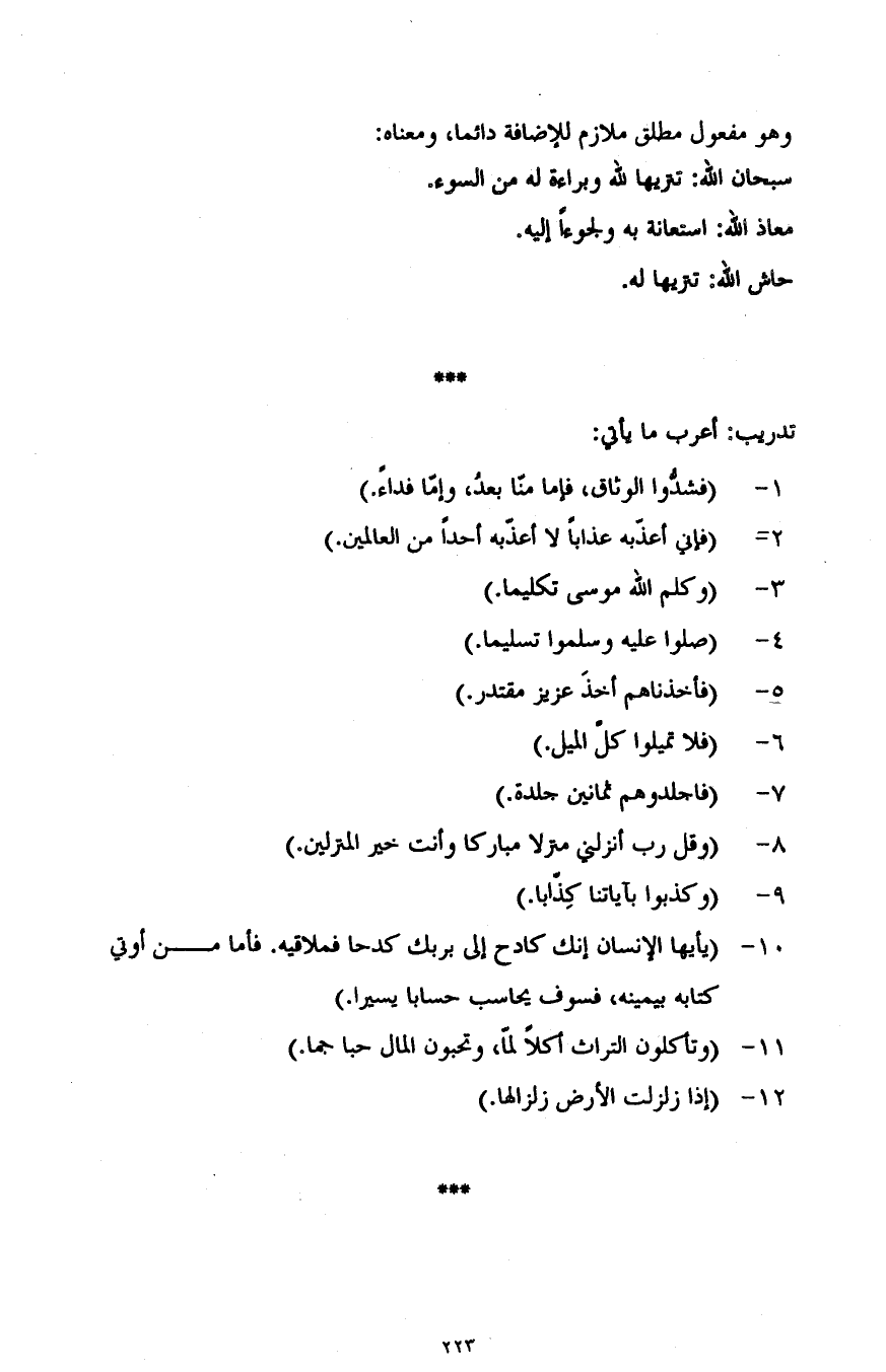 تدريب: أعرب ما يأتي: