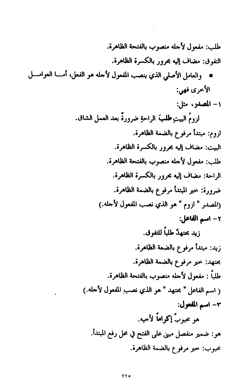 "المصدر "لزوم" هو الذي نصب المفعول لأجله".