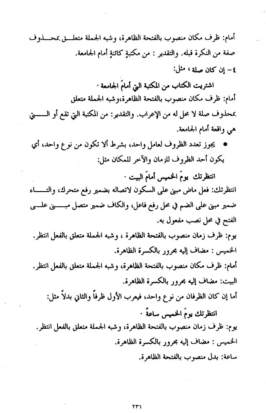 - يجوز تعدد الظروف لعامل واحد، بشرط ألا تكون من نوع واحد، أي يكون أحد الظروف للزمان والآخر للمكان، مثل:
