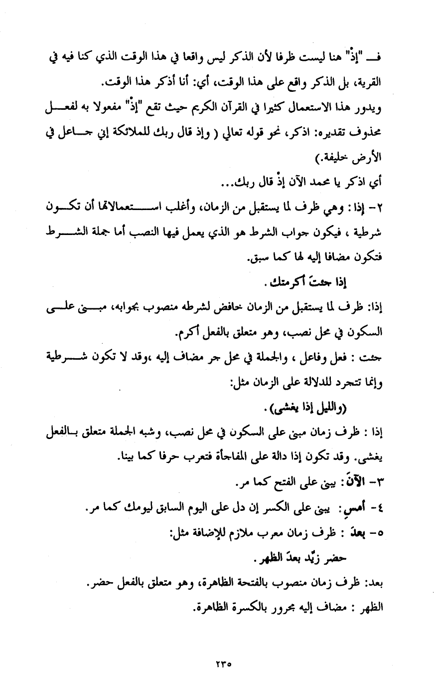 2- إذا: وهي ظرف لما يستقبل من الزمان، وأغلب استعمالاتها أن تكون شرطية، فيكون جواب الشرط هو الذي يعمل فيها النصب، أما جملة الشرط فتكون مضافا إليه لها كما سبق.