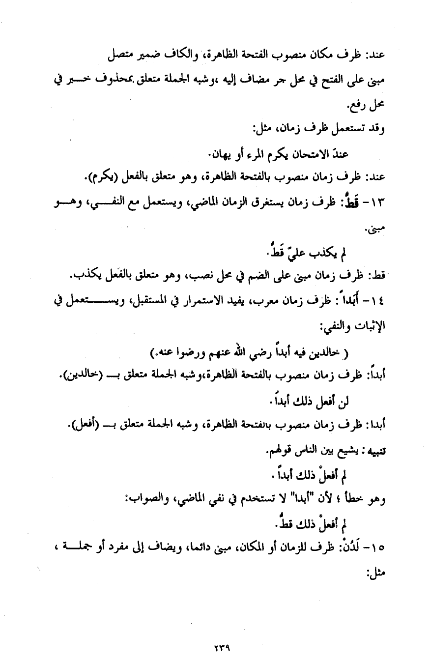 13- قطُّ: ظرف زمان يستغرق الزمان الماضي، ويستعمل مع النفي، وهو مبني.