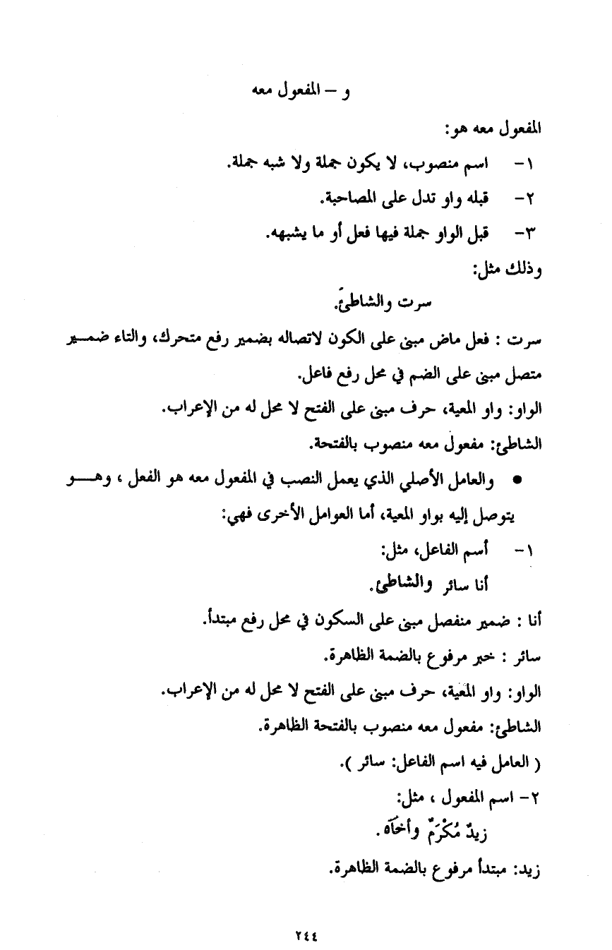 الشاطئ: مفعول معه منصوب بالفتحة.