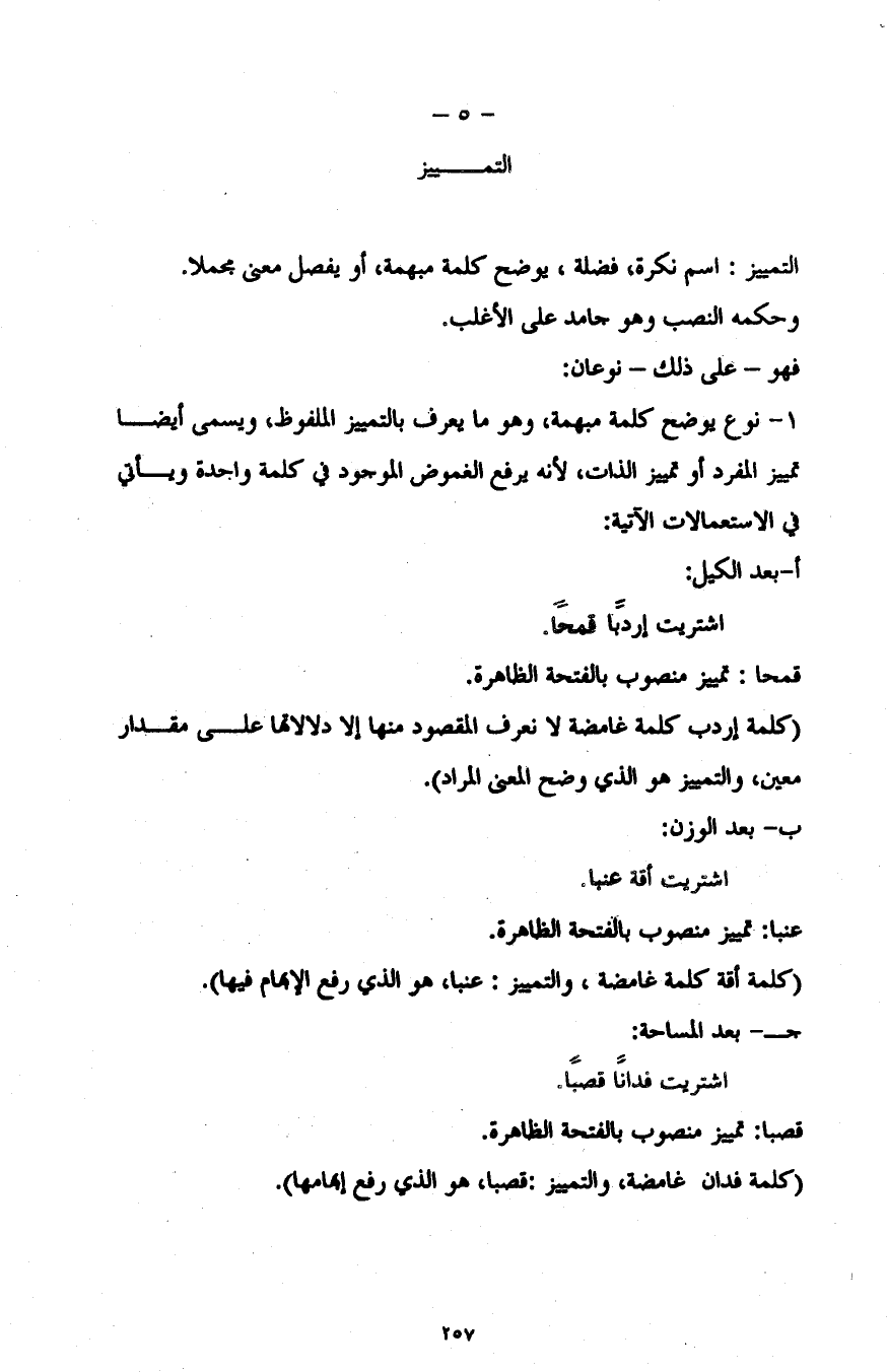 "كلمة فدان غامضة، والتمييز: قصبا، هو الذي رفع إبهامها".