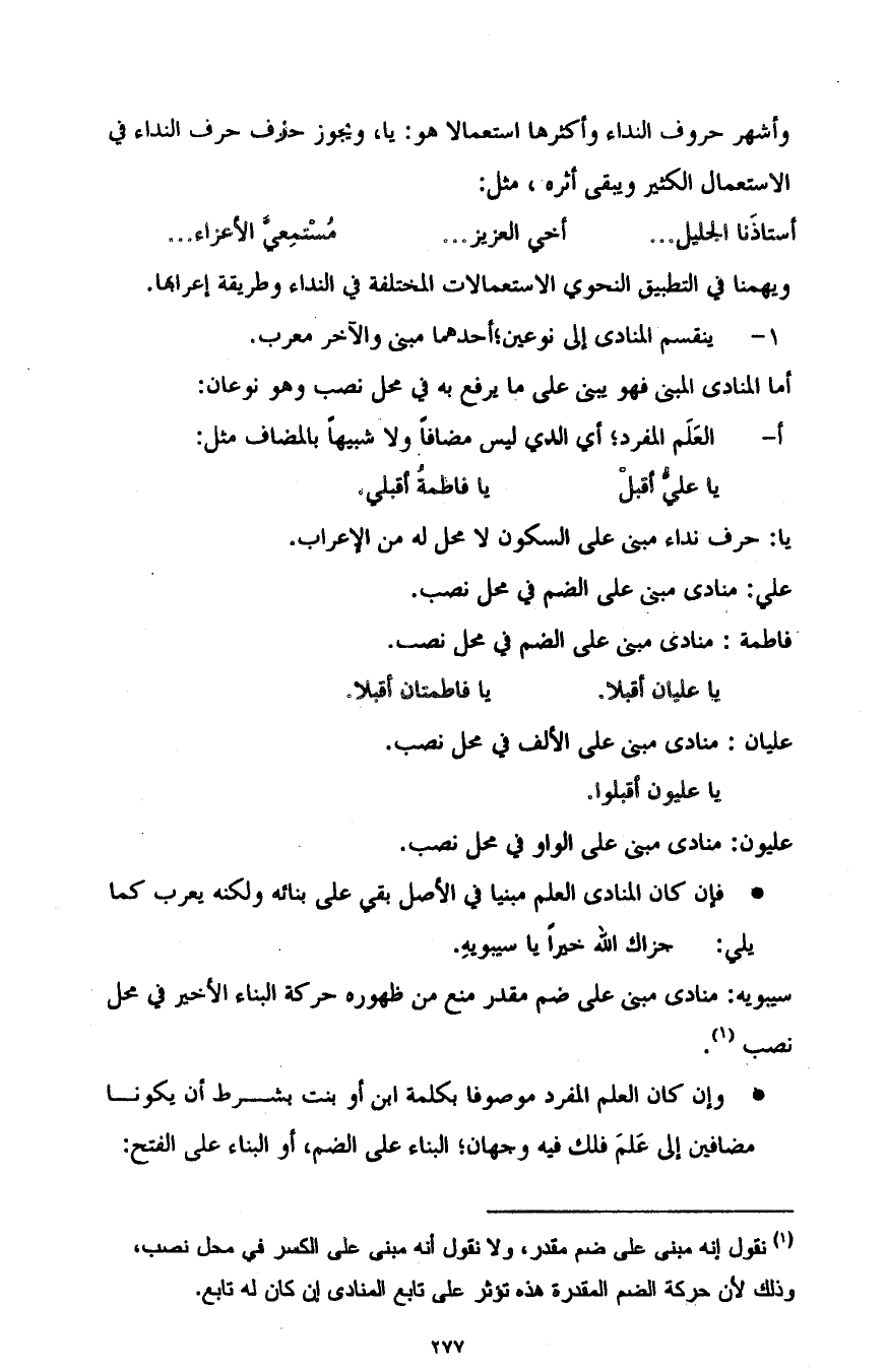 ويهمنا في التطبيق النحوي الاستعمالات المختلفة في النداء وطريقة إعرابها: