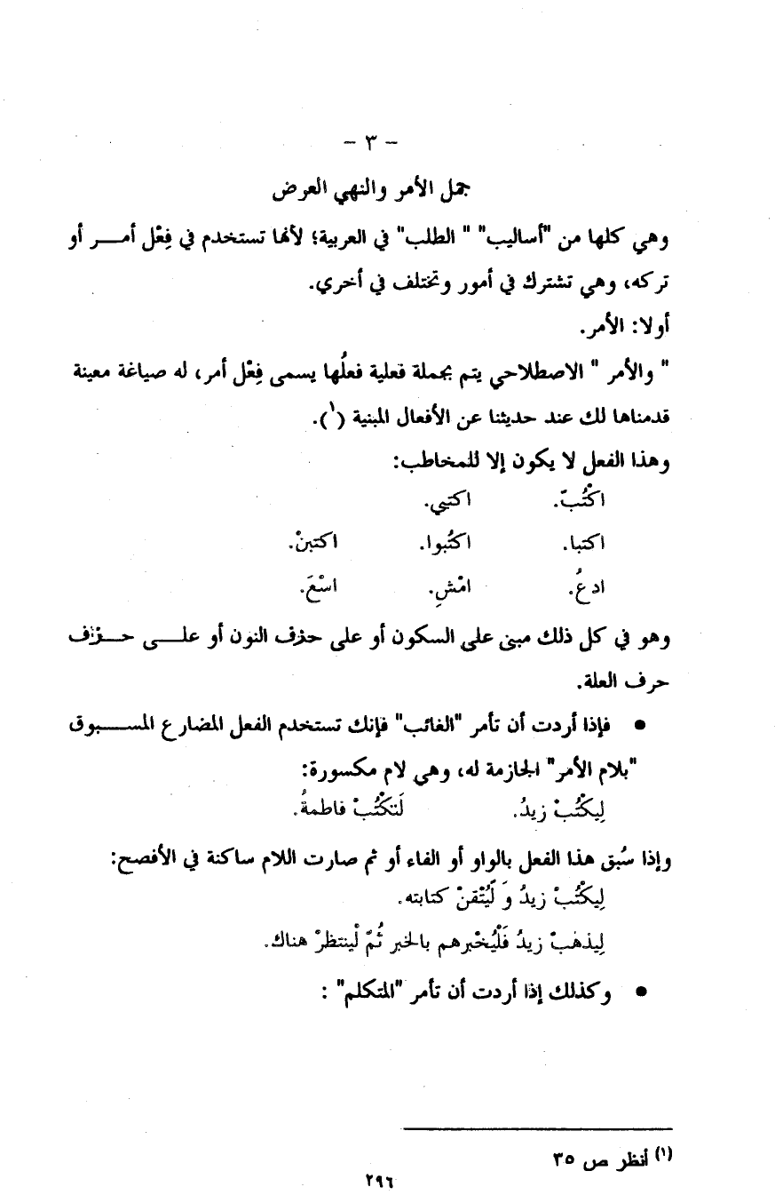 - فإذا أردت أن تأمر "الغائب" فإنك تستخدم الفعل المضارع المسبوق "بلام الأمر" الجازمة له، وهي لام مكسورة: