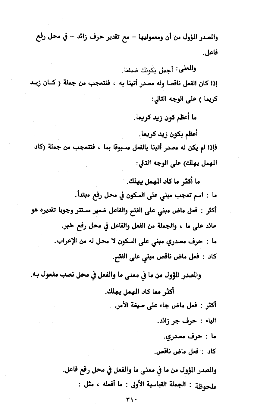 فإذا لم يكن له مصدر أتينا بالفعل مسبوقا بما، فتتعجب من جملة "كاد المهمل يهلك" على الوجه التالي: