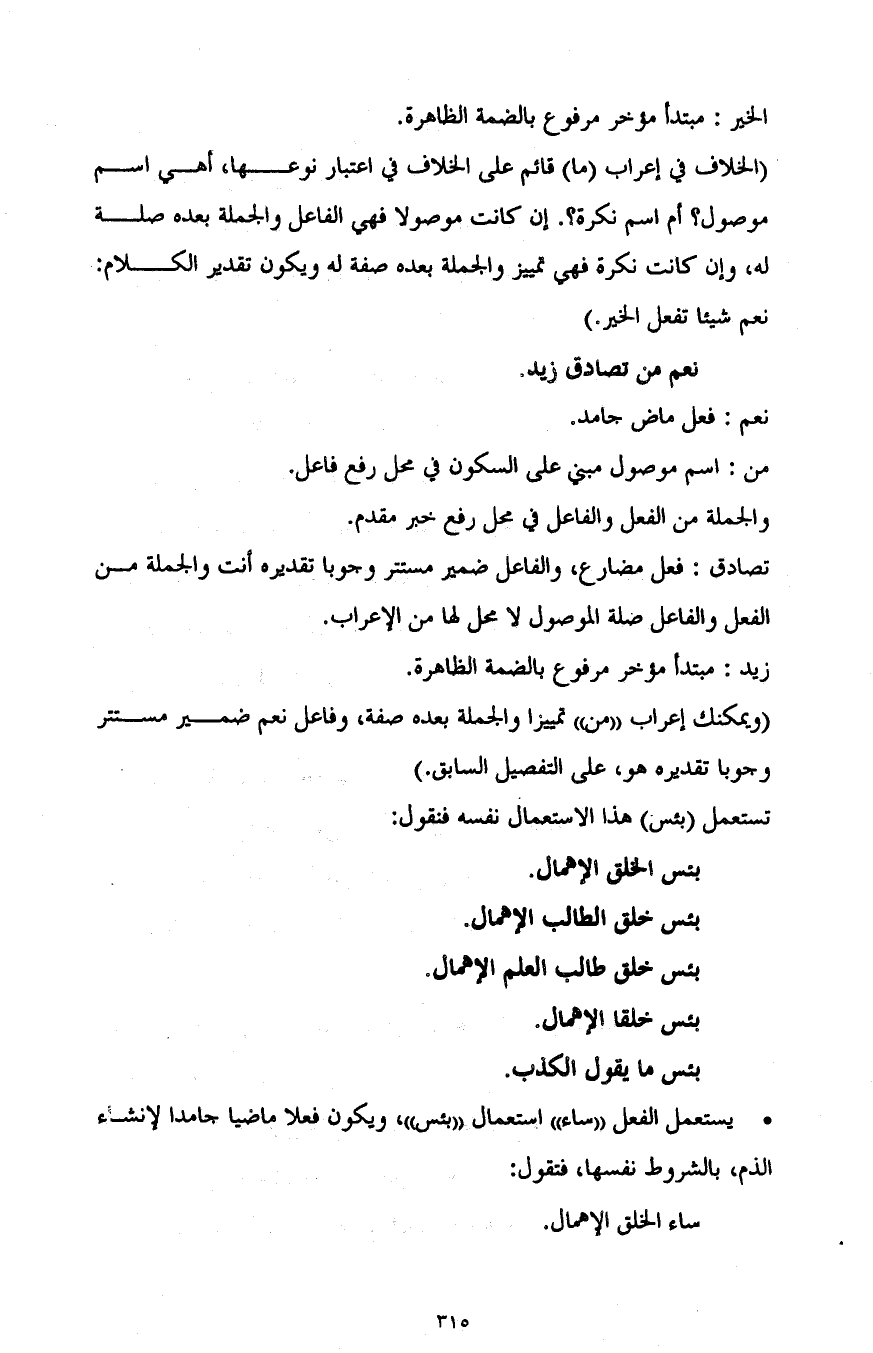 - يستعمل الفعل "ساء" استعمال "بئس"، ويكون فعلا ماضيا جامدا لإنشاء الذم بالشروط نفسها، فتقول: