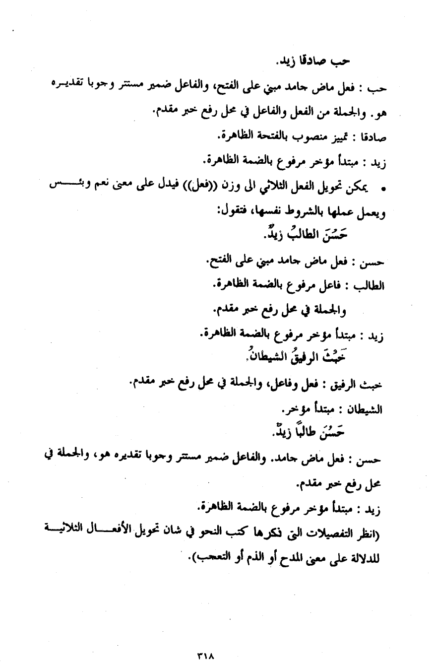 "انظر التفصيلات التي ذكرها كتب النحو في شأن تحويل الأفعال الثلاثية للدلالة على معنى المدح أو الذم أو التعجب".