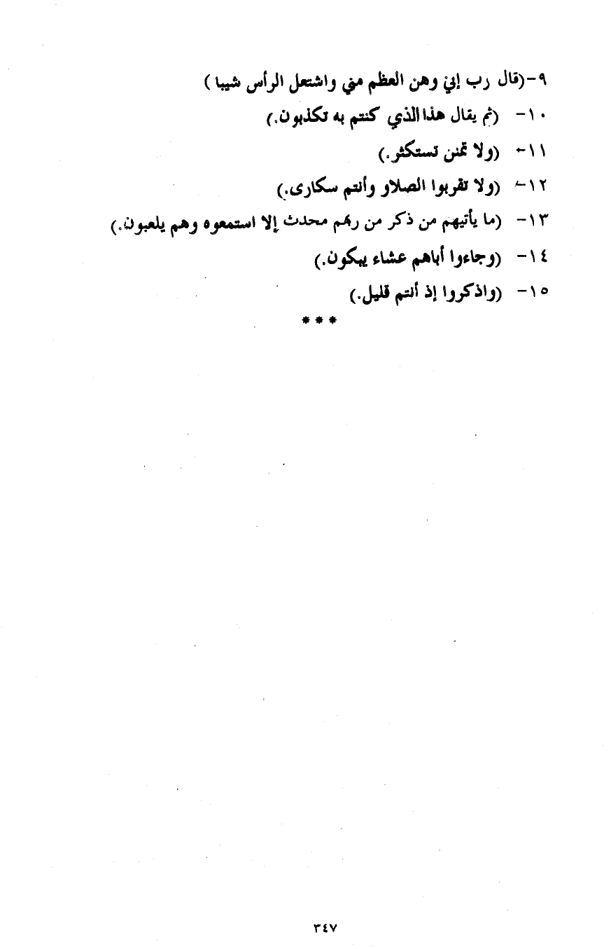 9- {قَالَ رَبِّ إِنِّي وَهَنَ الْعَظْمُ مِنِّي وَاشْتَعَلَ الرَّأْسُ شَيْبًا} .