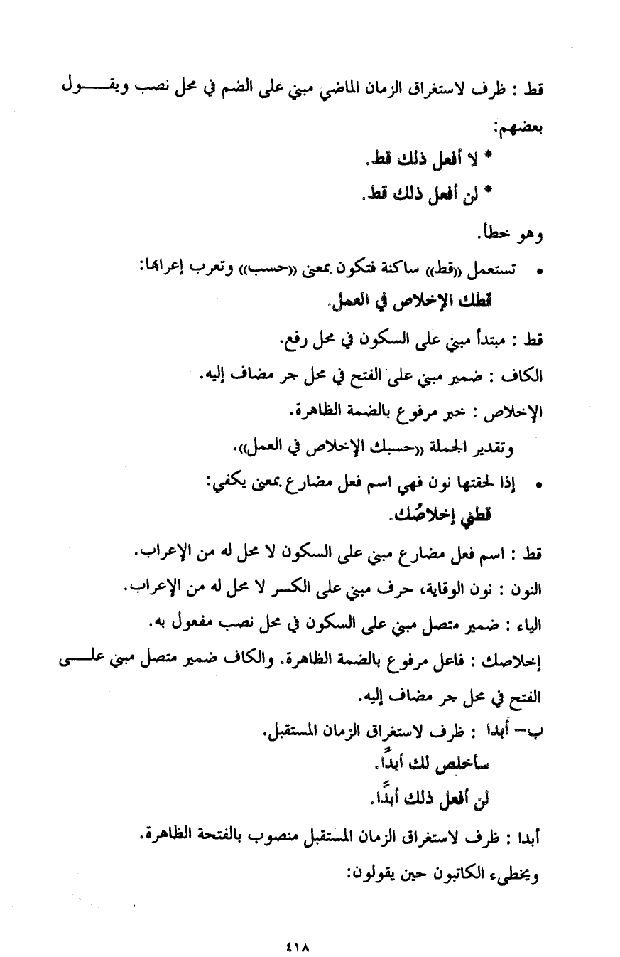 قط: اسم فعل مضارع مبني على السكون لا محل له من الإعراب.
