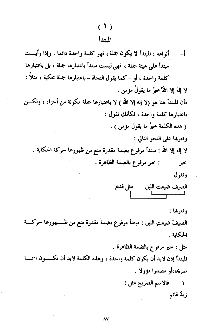 المبتدأ إذن لا بد أن يكون كلمة واحدة، وهذه الكلمة لا بد أن تكون اسما صريحا، أو مصدرا مؤولا: