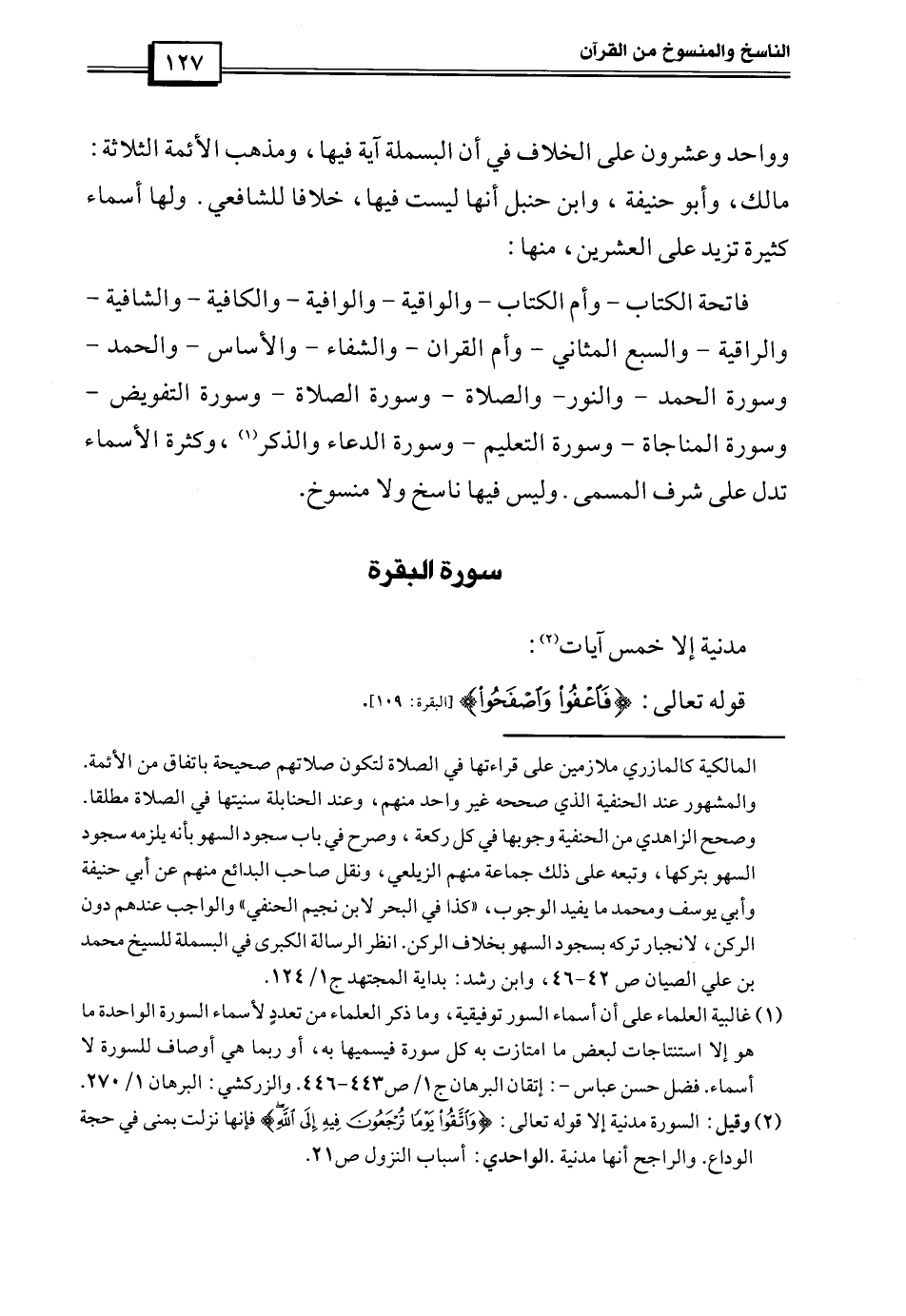 وَهِي محكمَة عِنْد جَمِيع الْمُفَسّرين إِلَّا عبد الرَّحْمَن بن زيد بن أسلم فَأَنَّهُ قَالَ فِيهَا آيَة مَنْسُوخَة