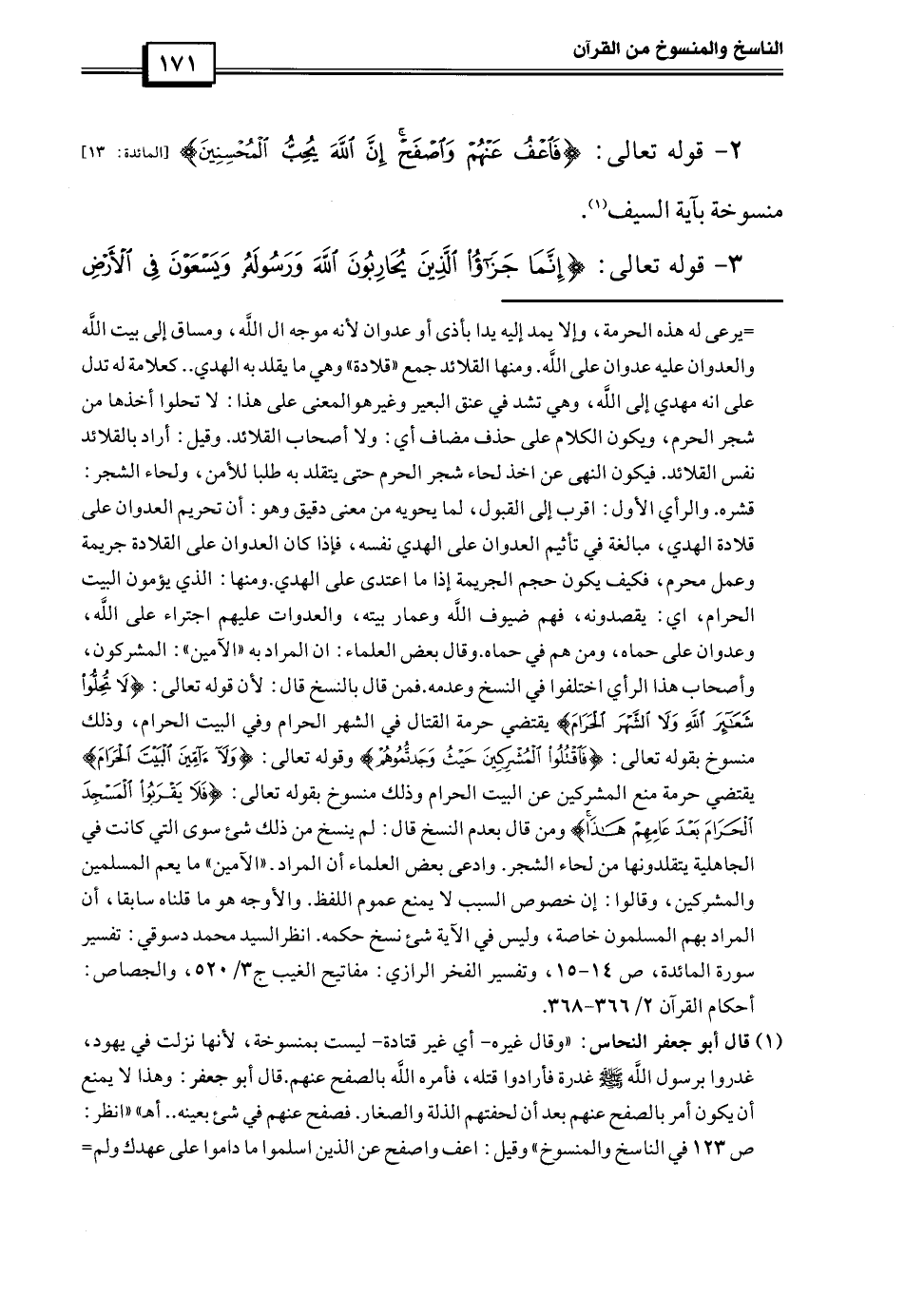 مَنْسُوخ مَعْنَاهَا بِآيَة السَّيْف