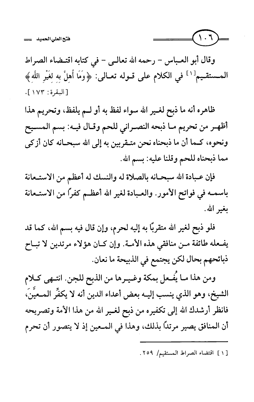 (¬1) اقتضاء الصراط المستقيم/ 259.