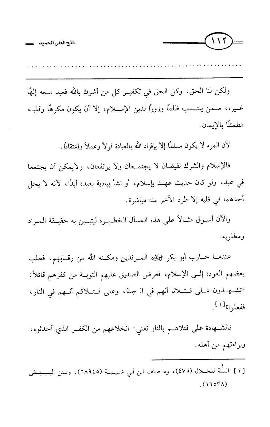 كتاب فتح العلي الحميد في شرح كتاب مفيد المستفيد في كفر تارك التوحيد