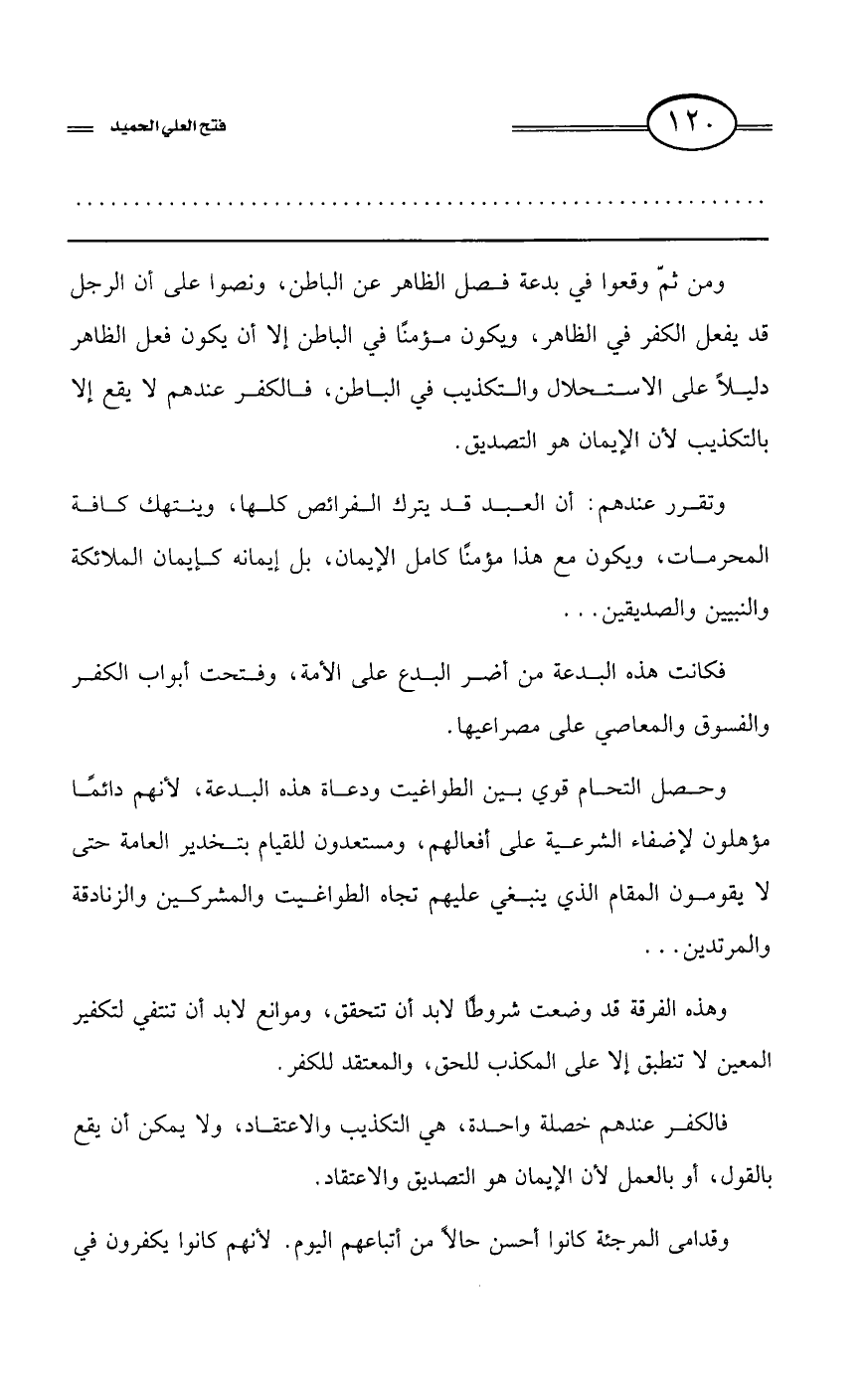 وقدامى المرجئة كانوا أحسن حالاً من أتباعهم اليوم. لأنهم كانوا يكفرون في