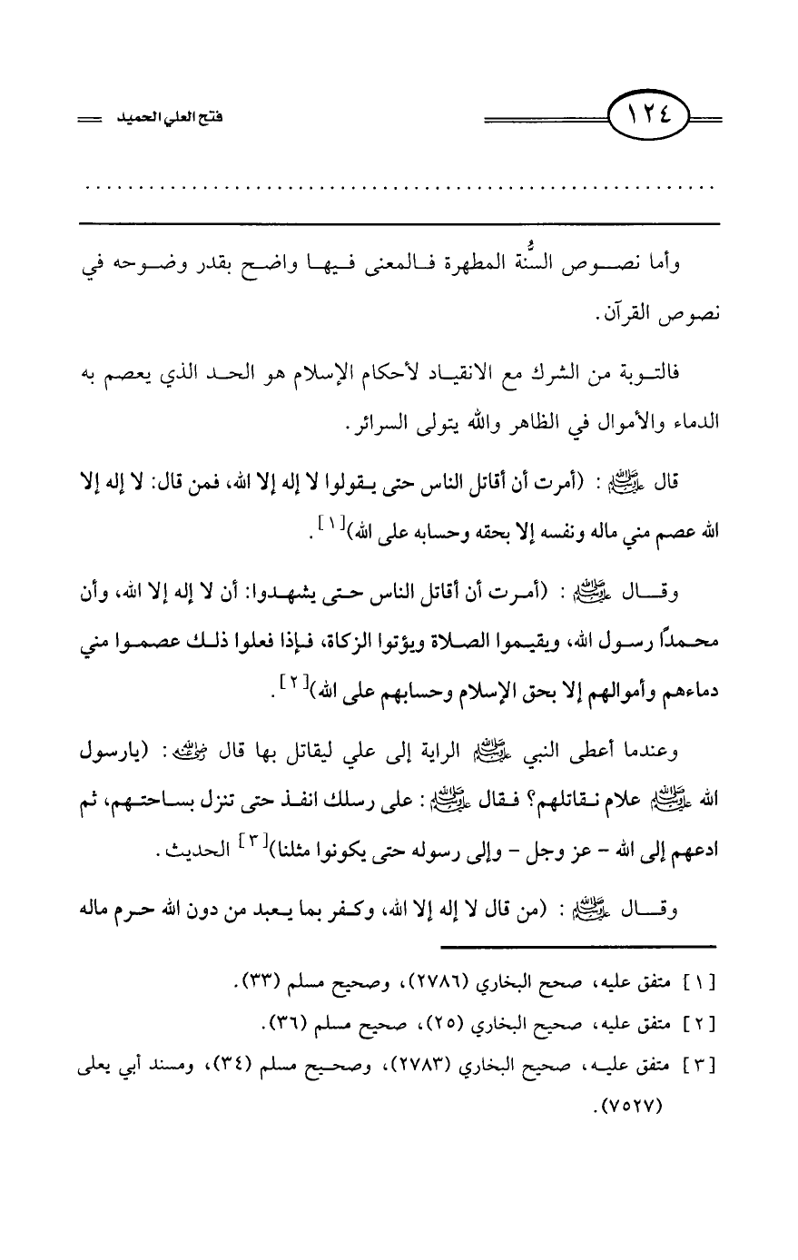 كتاب فتح العلي الحميد في شرح كتاب مفيد المستفيد في كفر تارك التوحيد