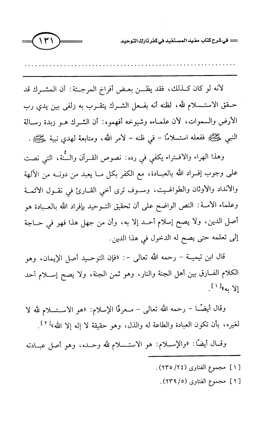 كتاب فتح العلي الحميد في شرح كتاب مفيد المستفيد في كفر تارك التوحيد