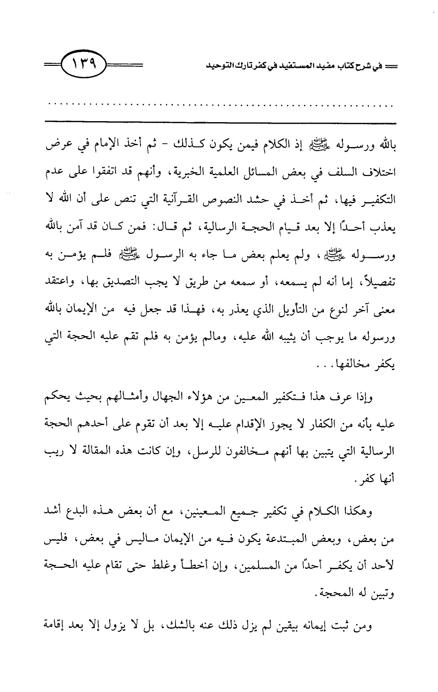 كتاب فتح العلي الحميد في شرح كتاب مفيد المستفيد في كفر تارك التوحيد