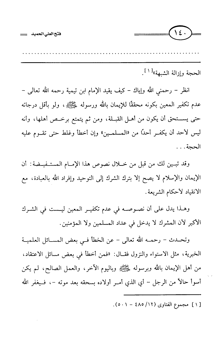 كتاب فتح العلي الحميد في شرح كتاب مفيد المستفيد في كفر تارك التوحيد