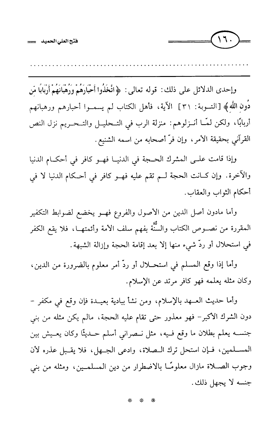 كتاب فتح العلي الحميد في شرح كتاب مفيد المستفيد في كفر تارك التوحيد