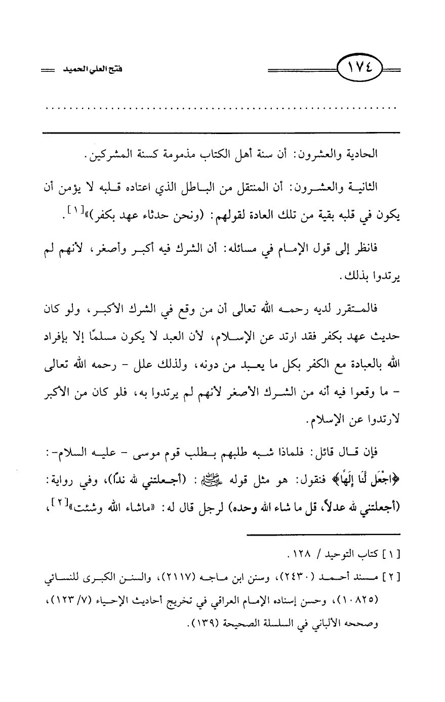 كتاب فتح العلي الحميد في شرح كتاب مفيد المستفيد في كفر تارك التوحيد