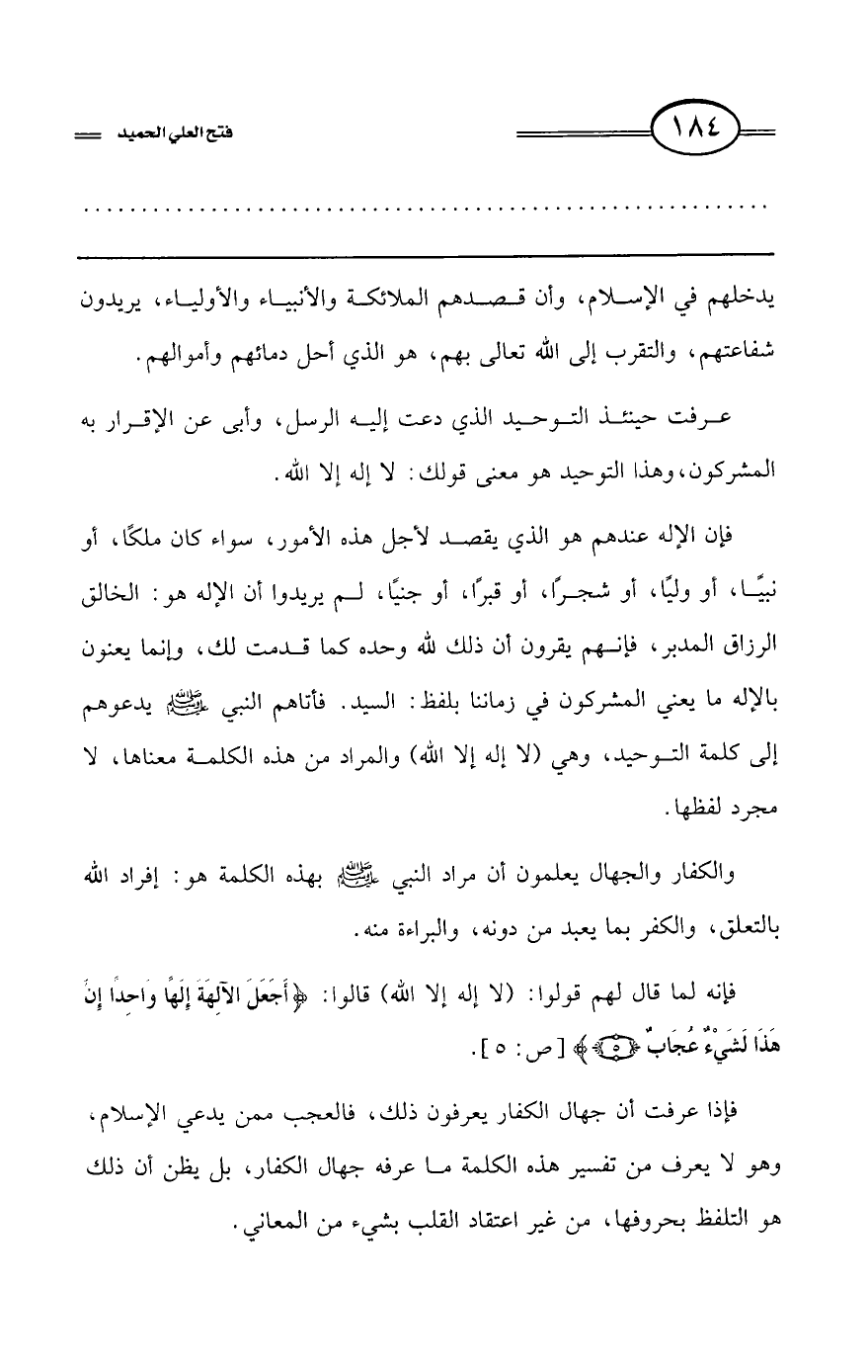 كتاب فتح العلي الحميد في شرح كتاب مفيد المستفيد في كفر تارك التوحيد