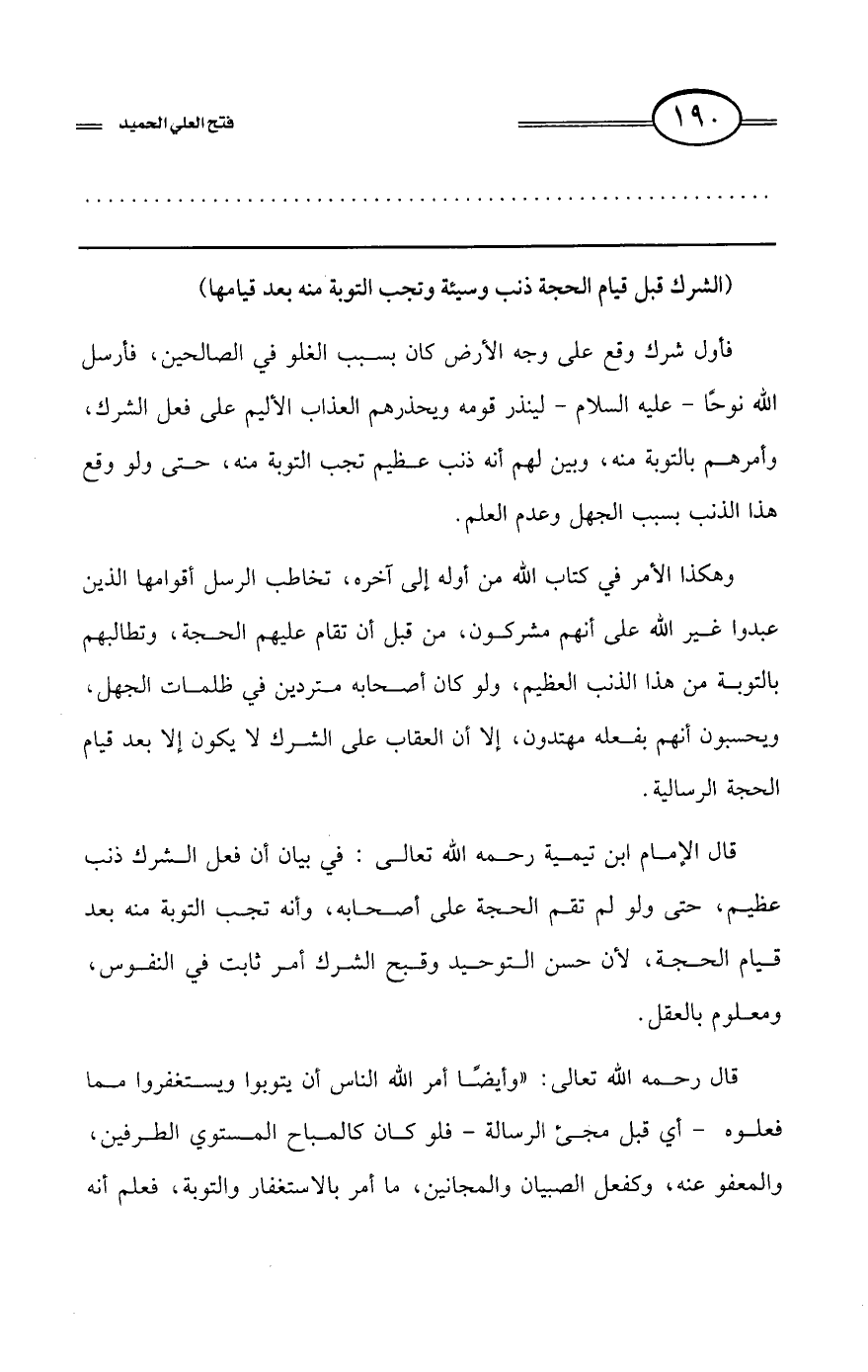 كتاب فتح العلي الحميد في شرح كتاب مفيد المستفيد في كفر تارك التوحيد