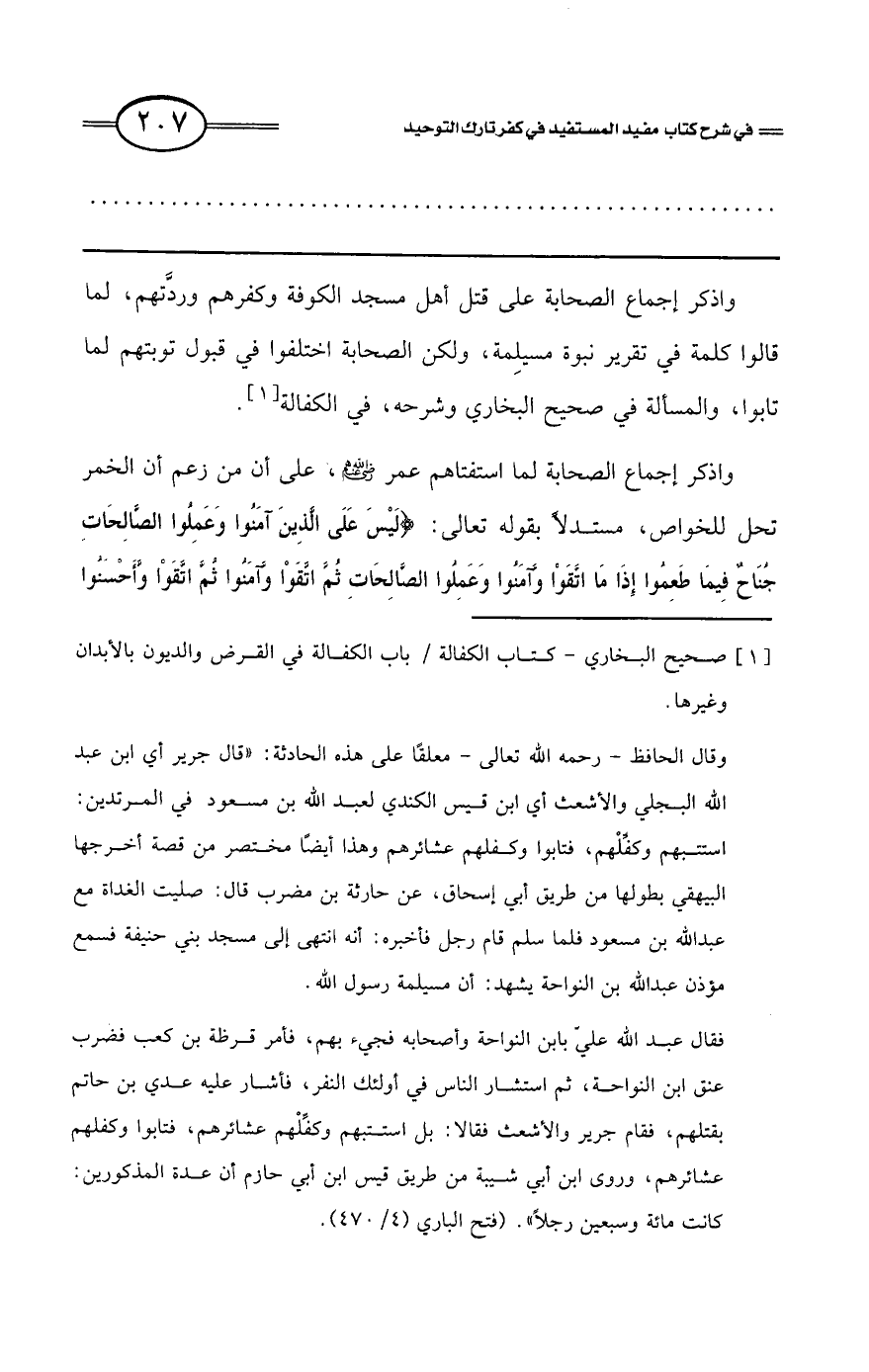 كتاب فتح العلي الحميد في شرح كتاب مفيد المستفيد في كفر تارك التوحيد